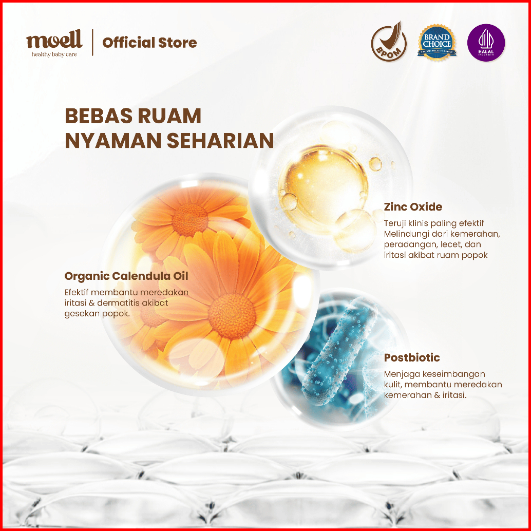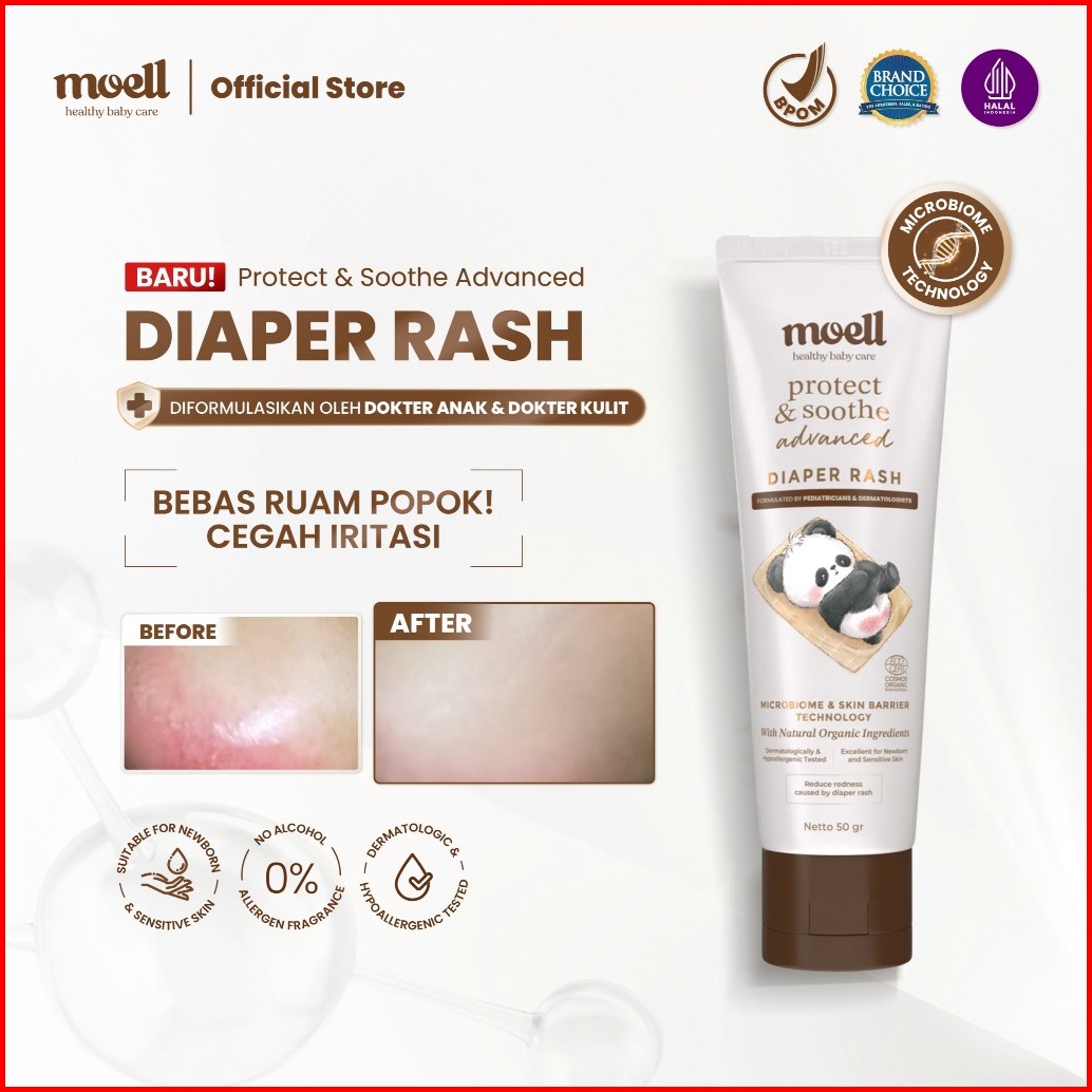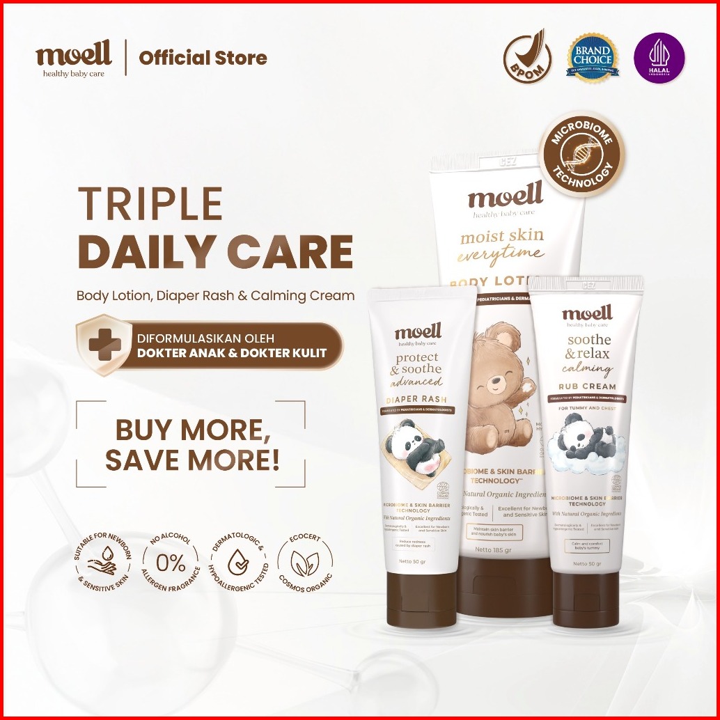 Moell Triple Daily Care Deals - Body Lotion 185gr Diaper Rash 50gr Calming Rub Cream 50gr - Microbiome Teknologi - Krim
