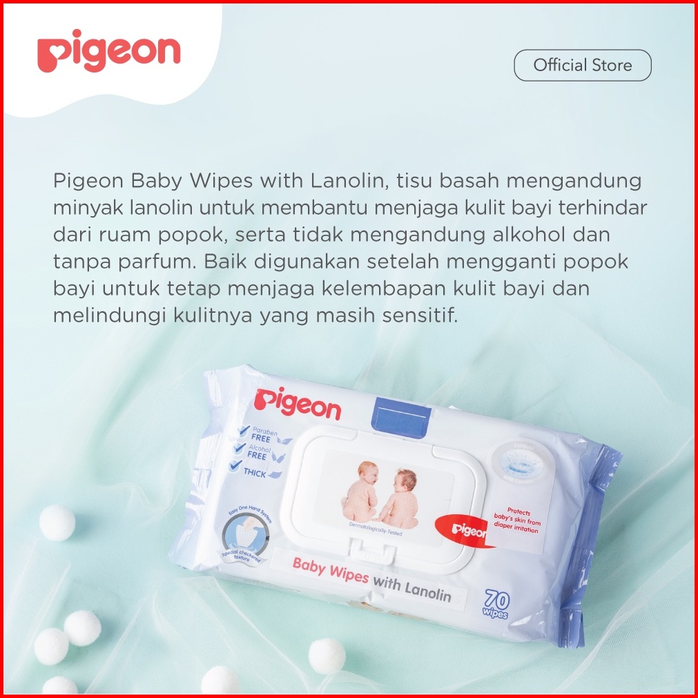 Pigeon Baby Wipes With Lanolin 70 Sheets Tisu Basah Bayi Tisu Lembut Untuk Kulit Sensitif