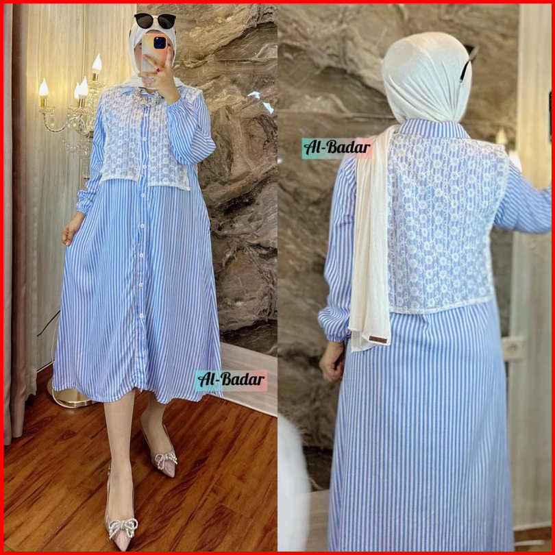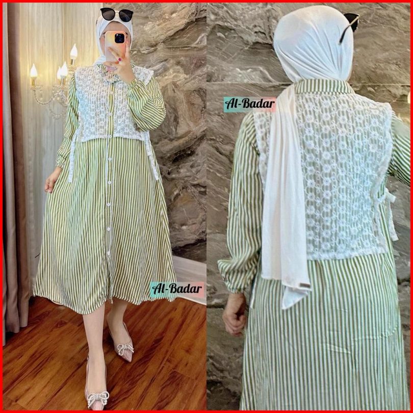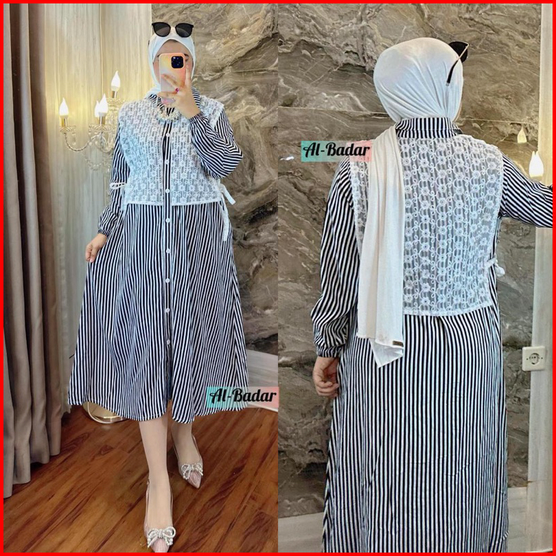 Retta Midi Gamis Muslim Katun Salur Premium All Size Ootd Casual Daily