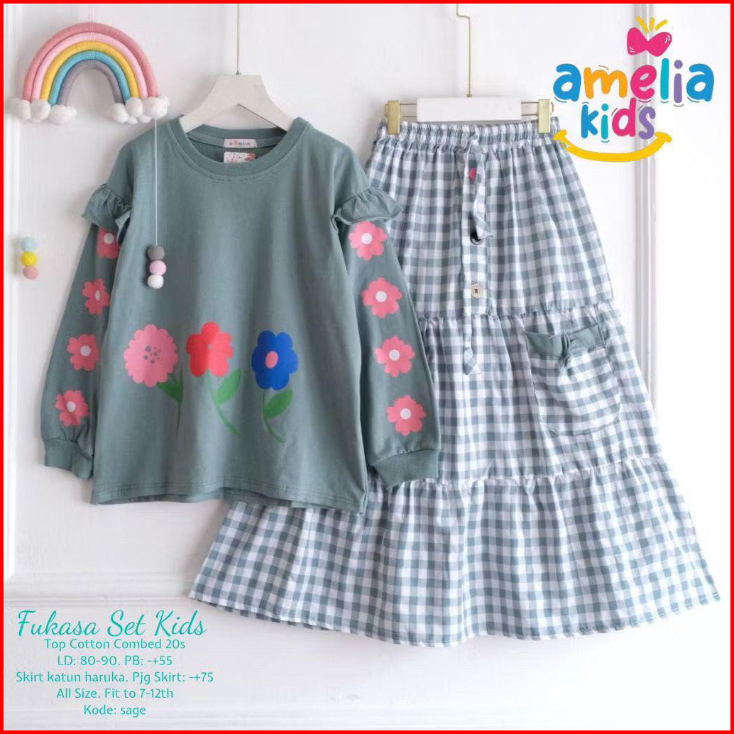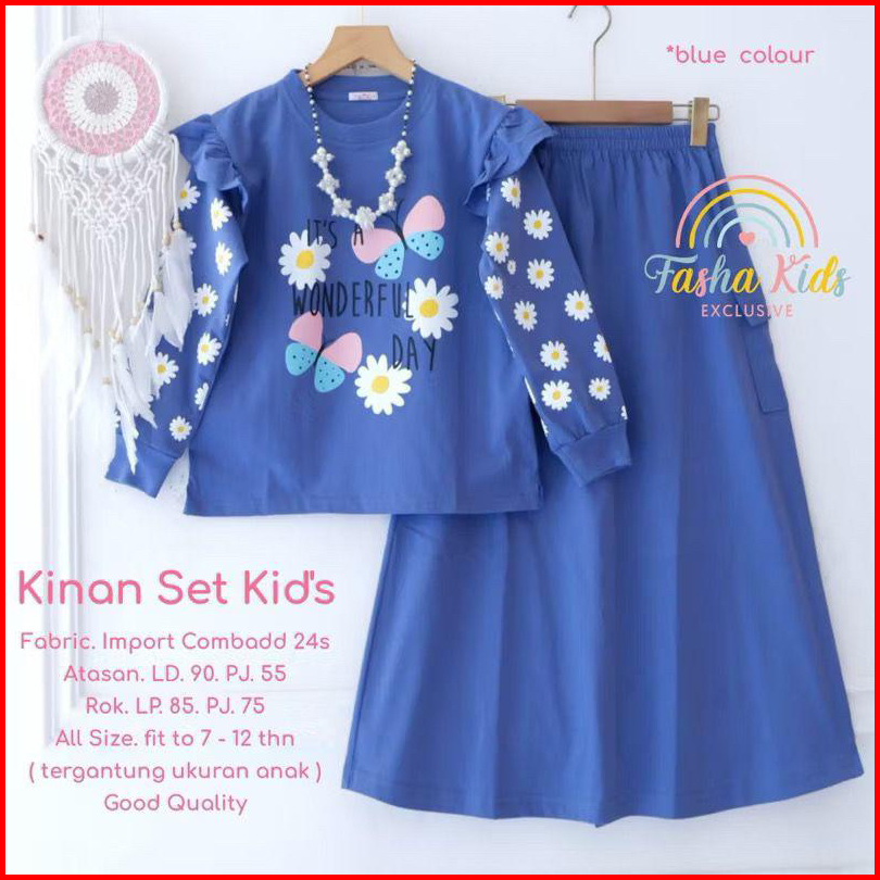 Kinan Set Kids Sablon Ld 90 Untuk Usia 8-12 Thn Bahan Cringkel Airflow