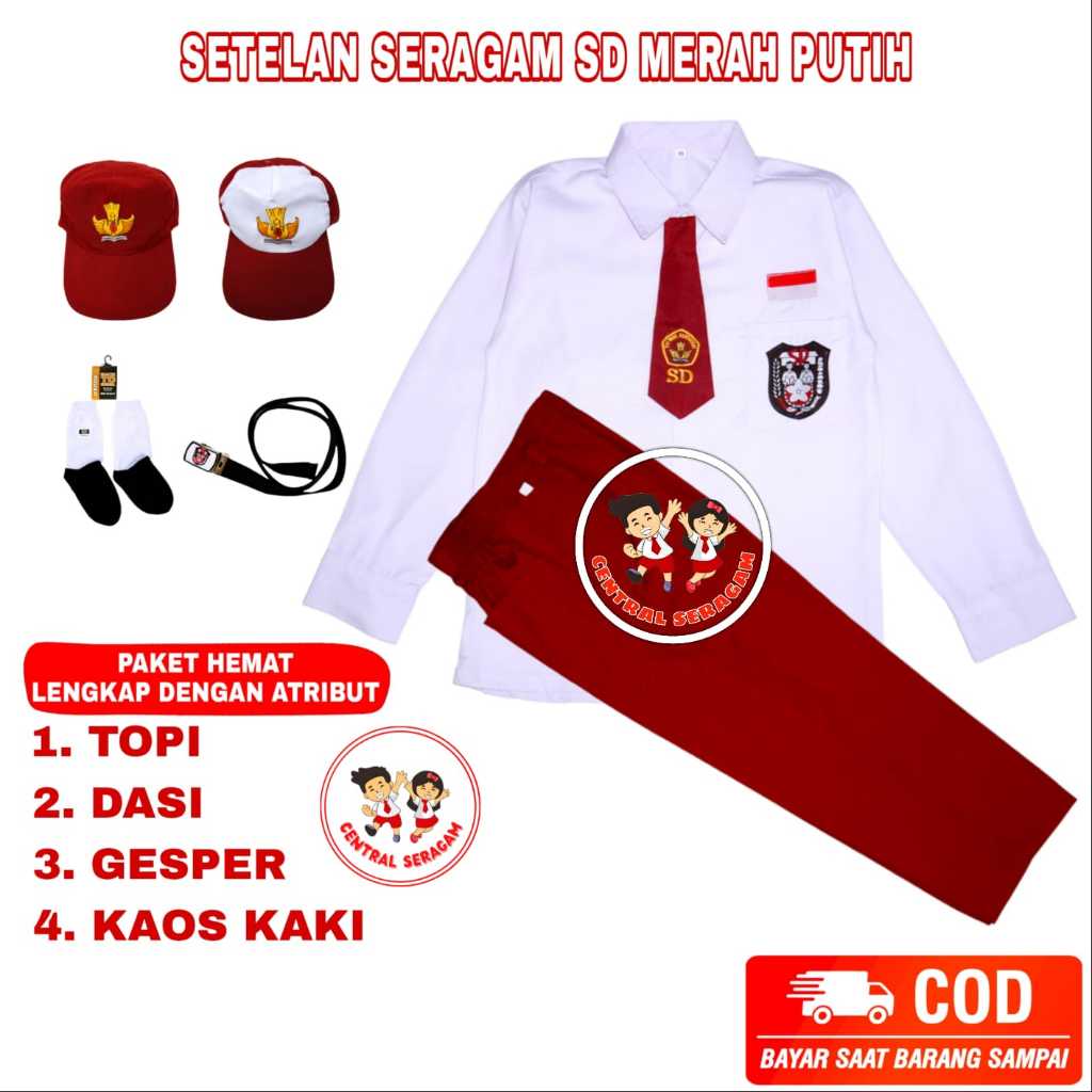 Setelan Super Lengkap Seragam Sekolah SD Laki laki Baju Panjang Celana Panjang Kelas 1 – 6 SD