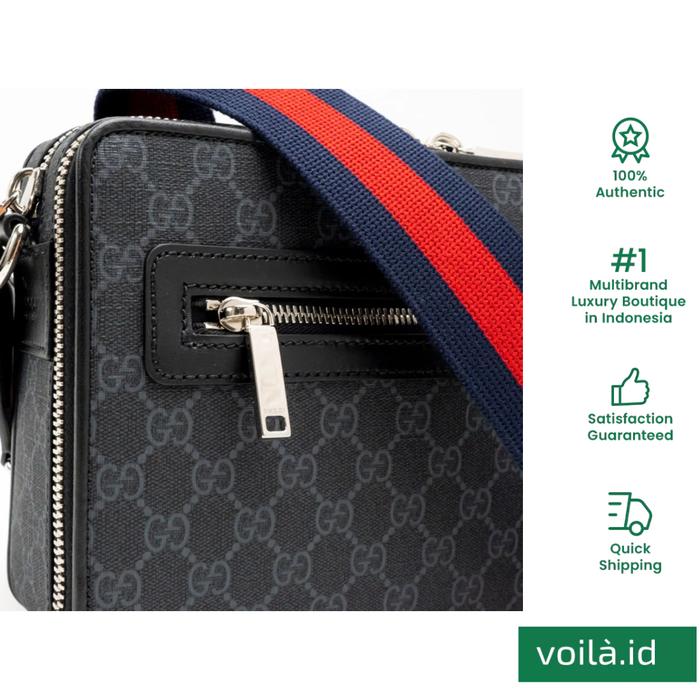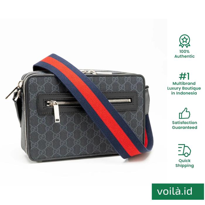 VOILAID MEDIUM GG SUPREME CANVAS BLUE RED WEB STRIPE CROSSBODY BAG BLACK