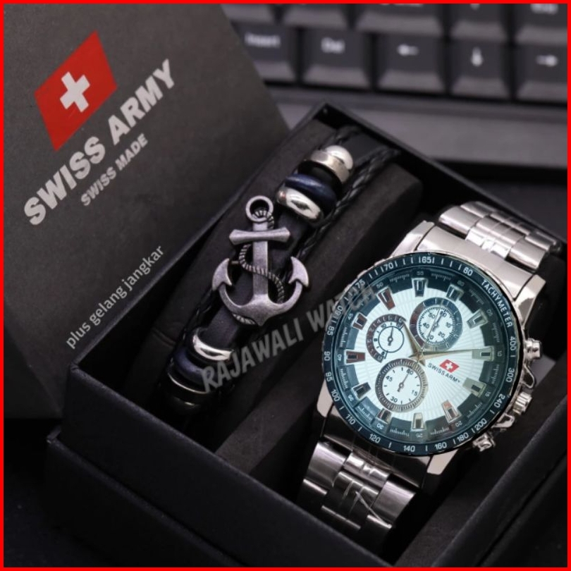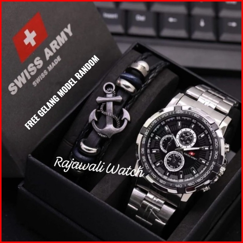 Jam Tangan Pria Swiss Jk-8187 Rantai Stainless Paket Full Set Free Gelang Motif Random Chrono Variasi Free Box Analog Qu