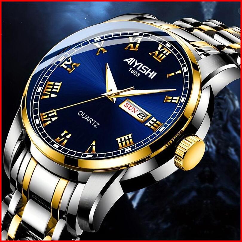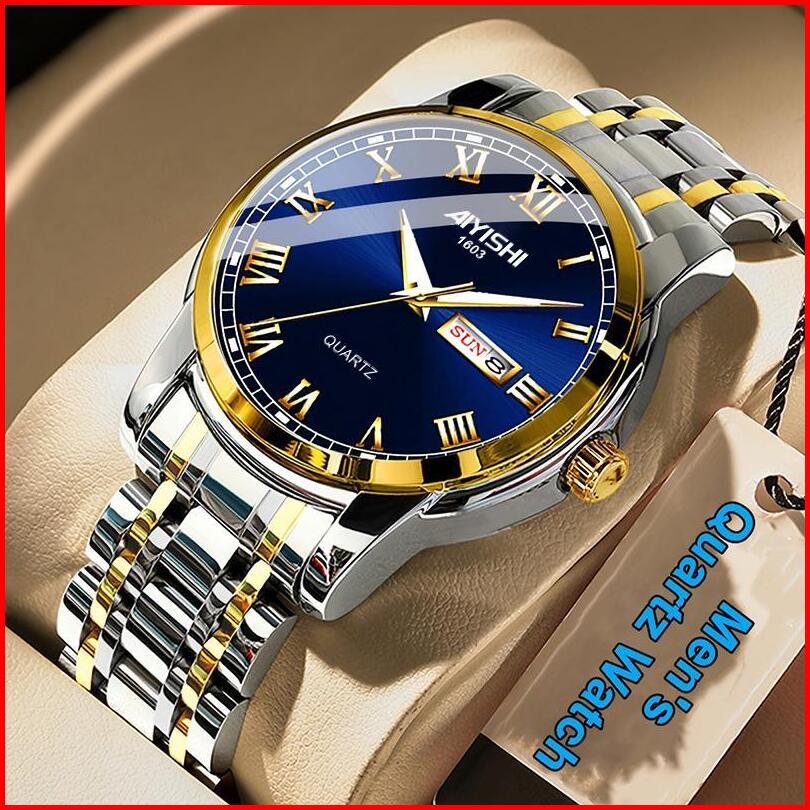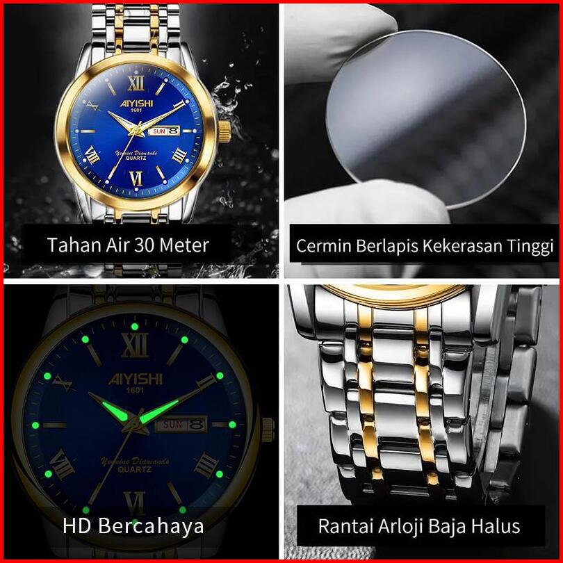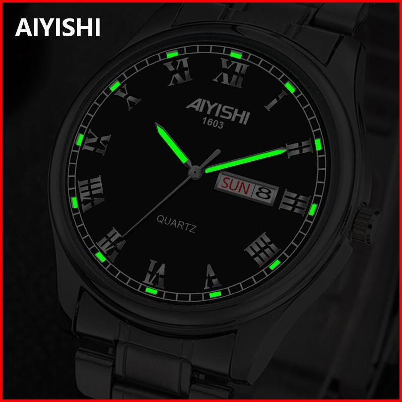 Aiyishi 1603 Jam Tangan Pria Bercahaya Tahan Air Jam Tangan Kuarsa Pria Fashion Gaya Baja Tahan Karat Asli