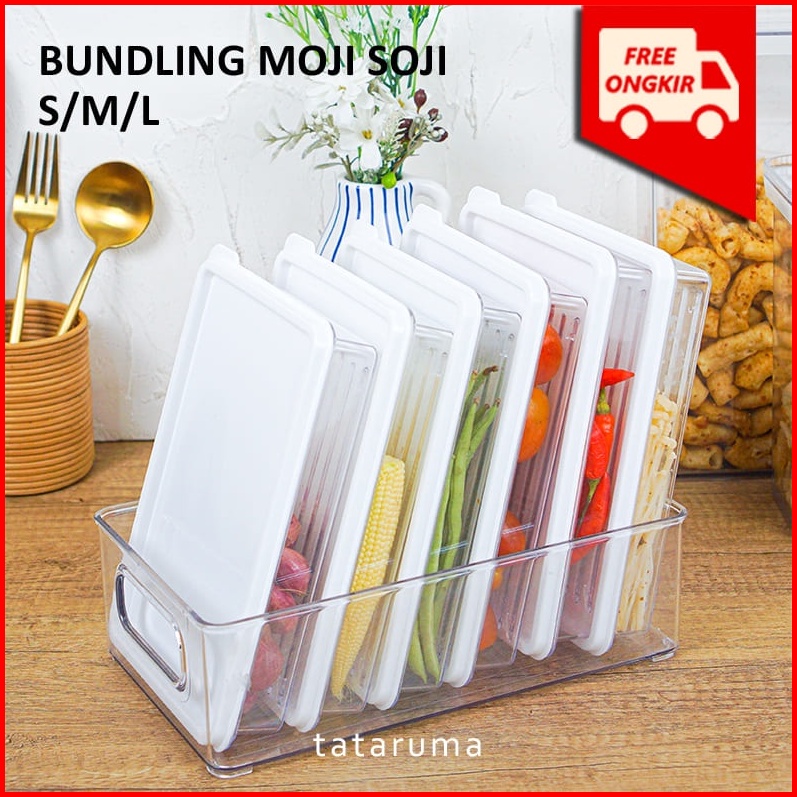 Tataruma Bundling Moji-soji S M L - Kotak Kontainer Tempat Penyimpanan Toples Makanan Sayur Buah Daging Kulkas Fridge Fr