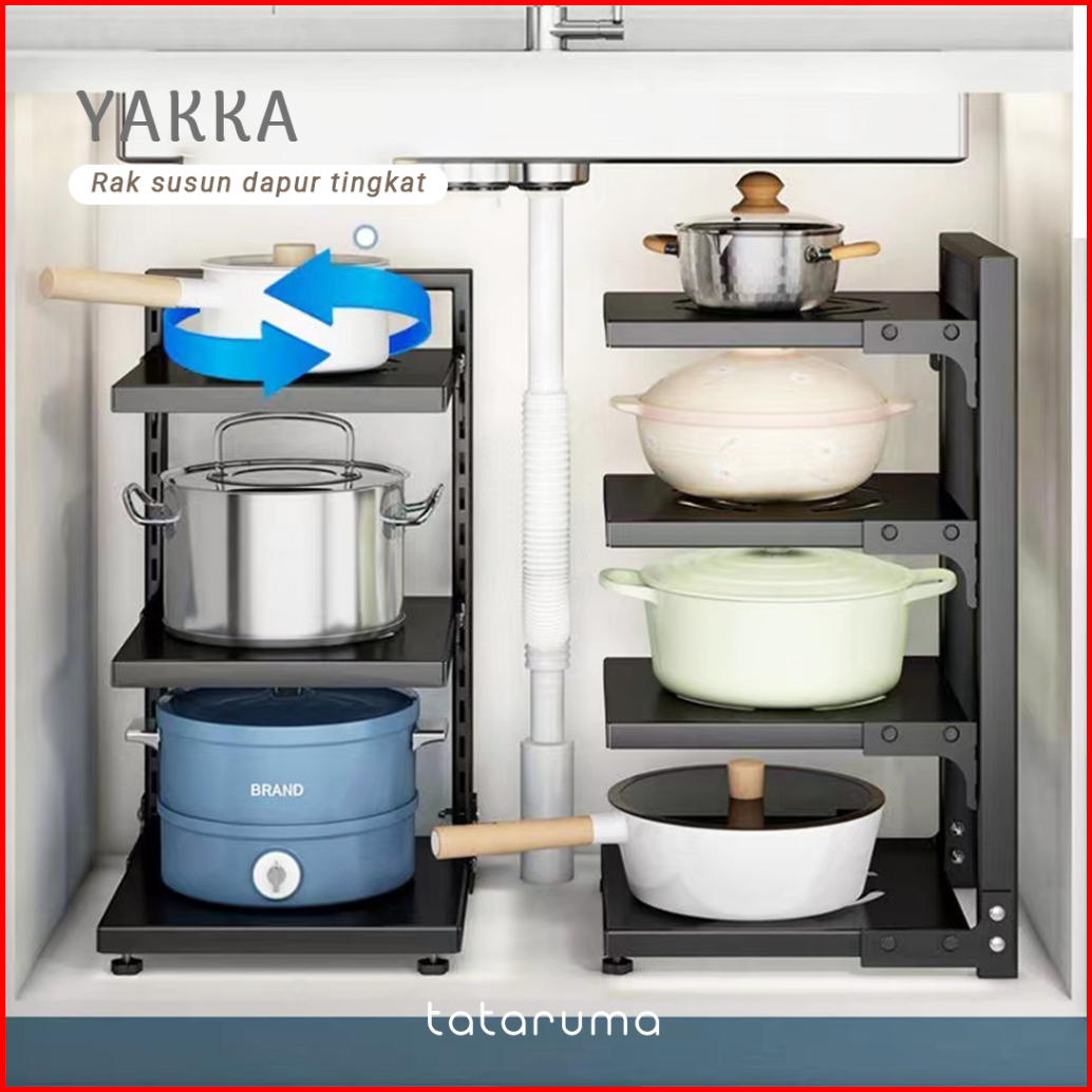 Tataruma Yakka - Rak Dapur Bawah Kabinet Tempat Penyimpanan Panci Alat Dapur Tingkat Kitchen Rack Multilapis Susun