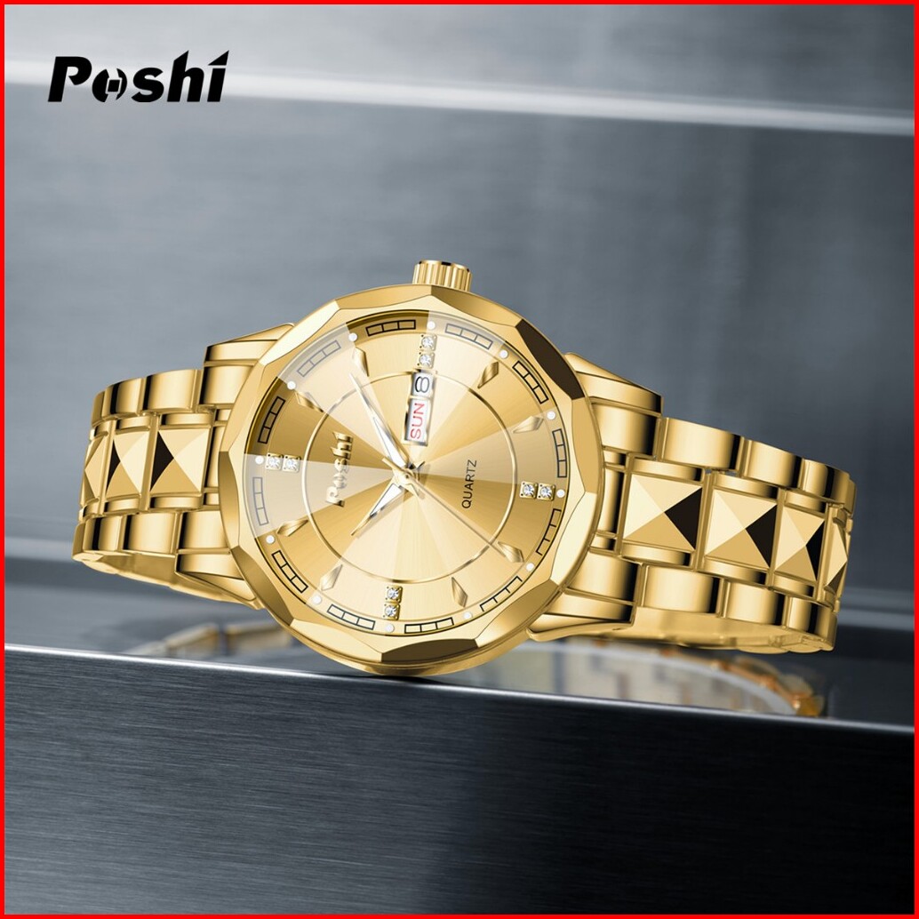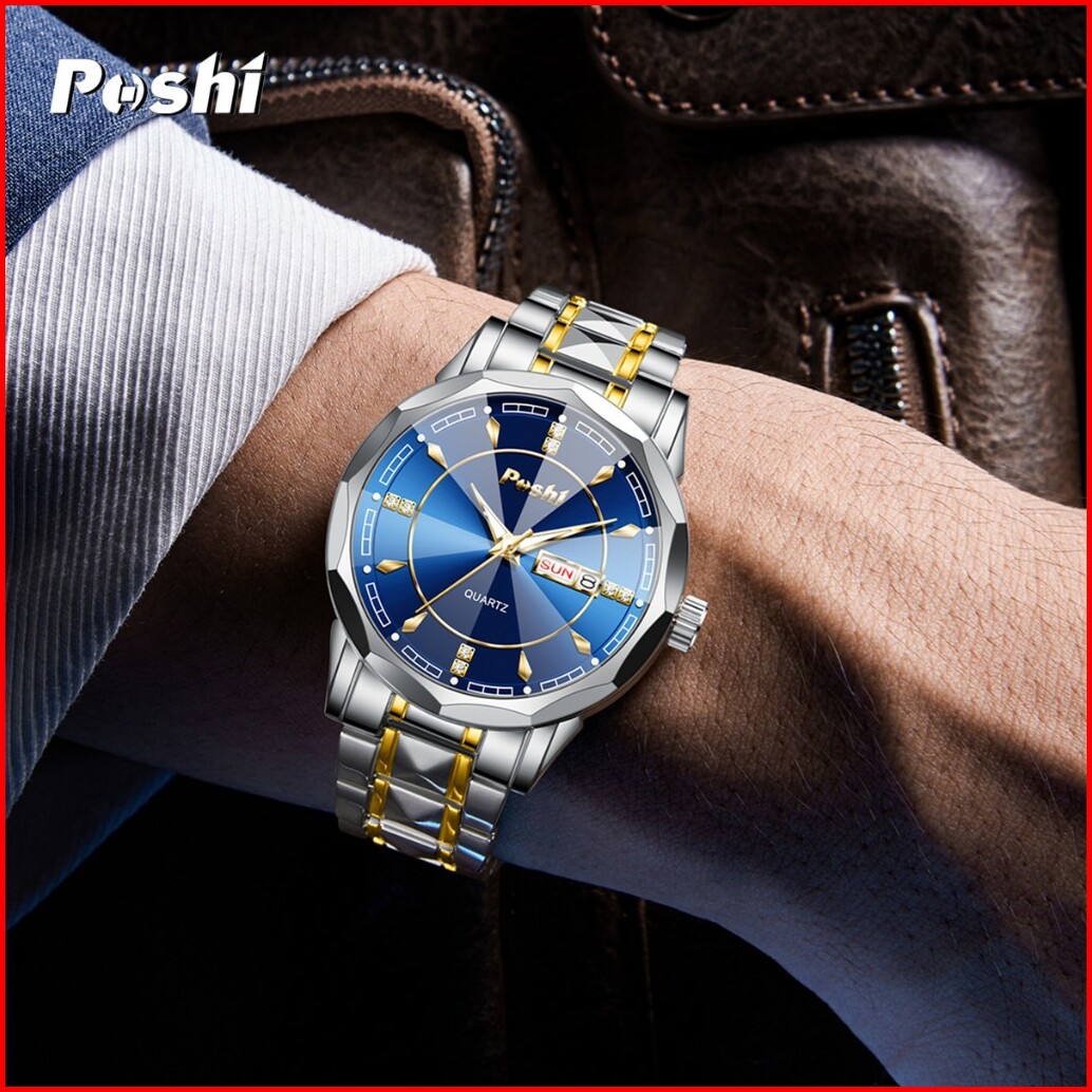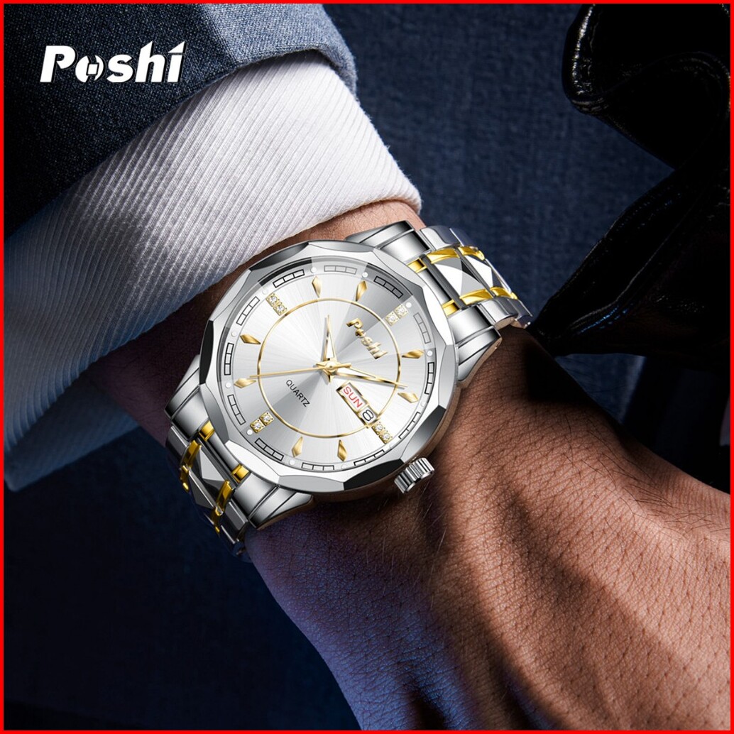 Poshi Jam Tangan Pria Bisnis Anti Air Kuarsa Jam Pria Calendar Tali Stainless Steel Ps983 Watches