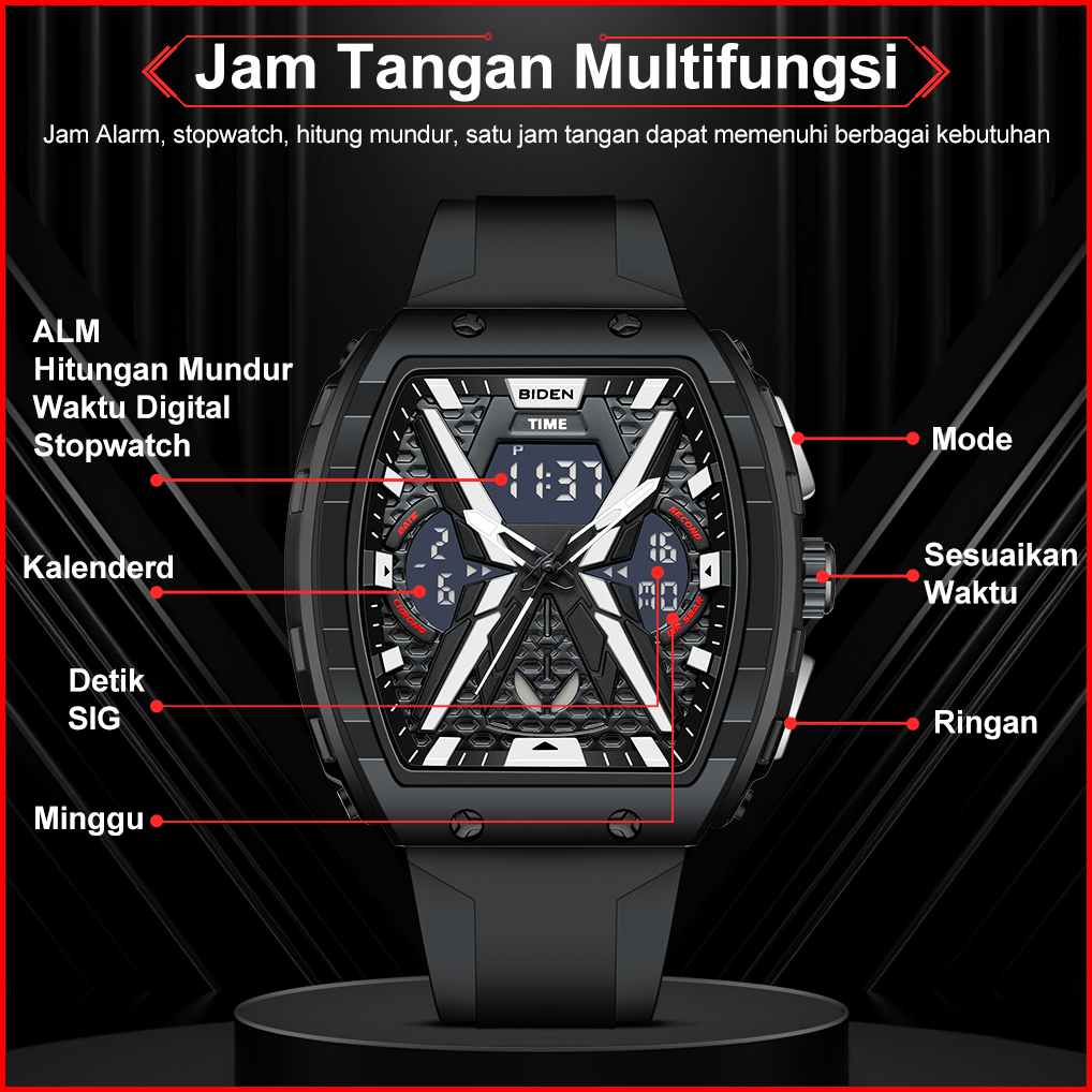 Biden Jam Tangan Pria Anti Air Original Digital Analog Multifungsi Alarm Tali Silikon Jam Tangan Cowok