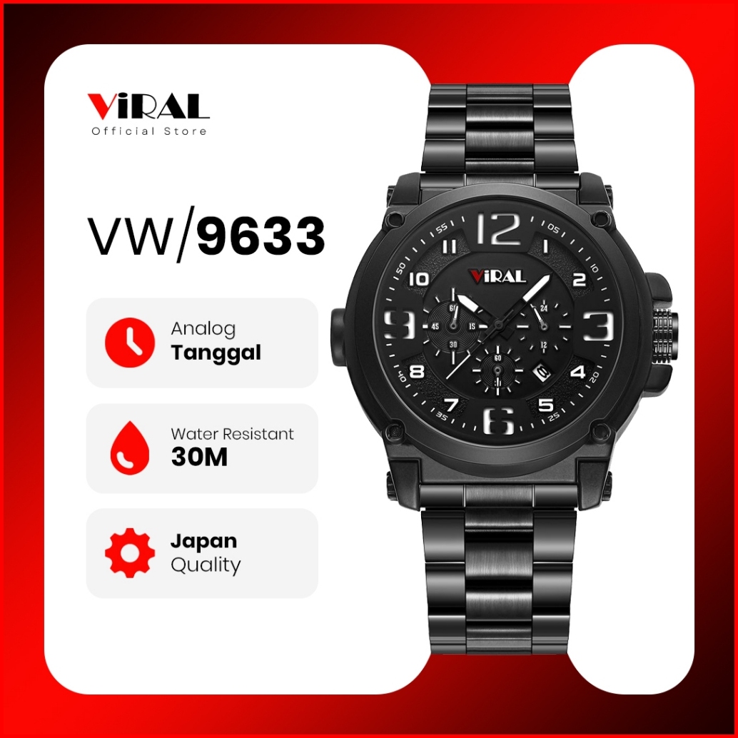 Viral Watch - Jam Tangan Pria Japan Quality 9633 Anti Air Water Resistant 30m Rantai Stainless Steel