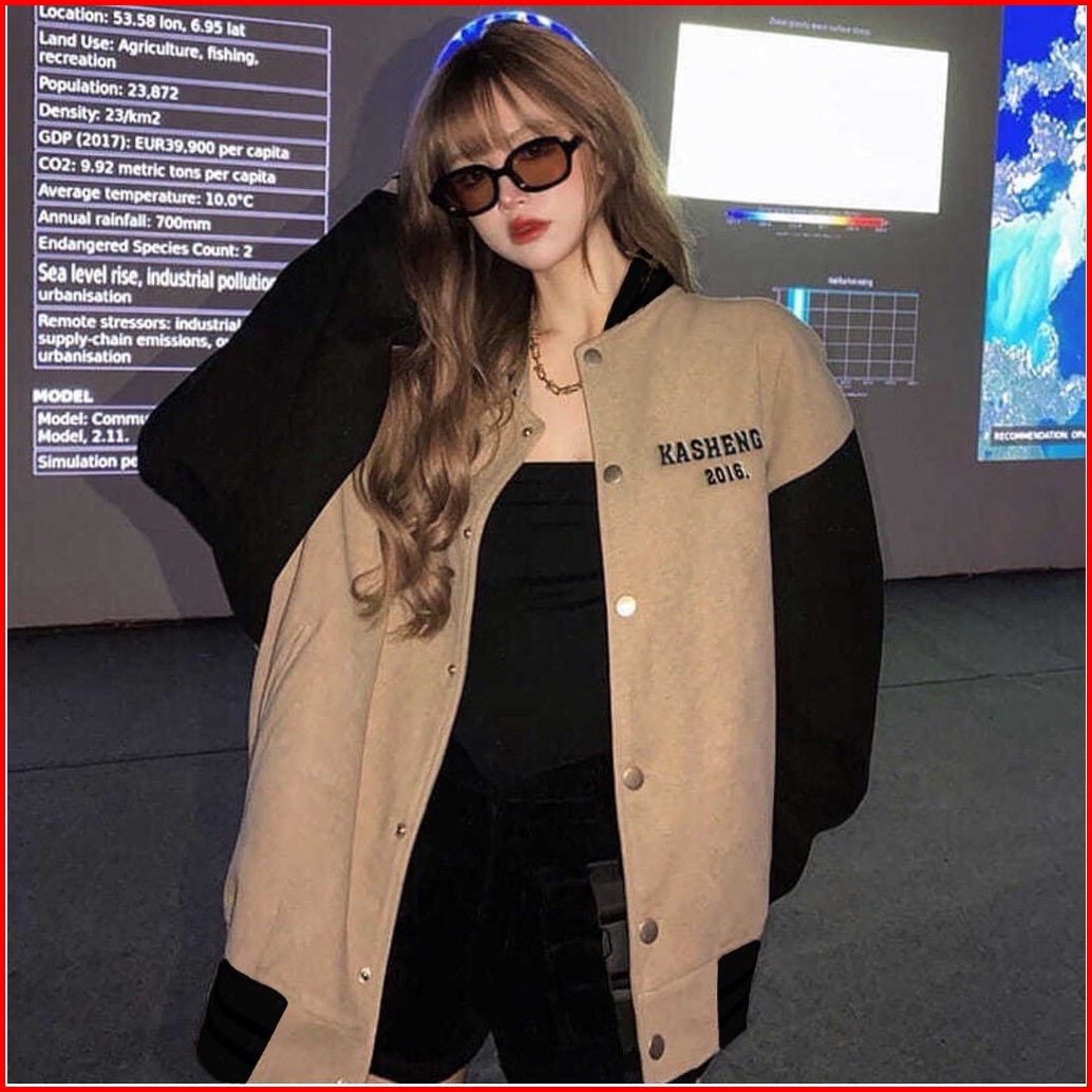 Jaket Wanita Kasheng Baseball Jaket Wanita Oversize - Varsity Jaket - Jaket Baseball Wanita