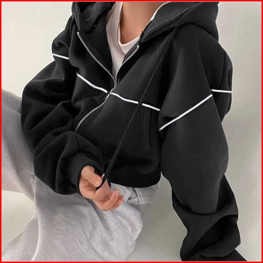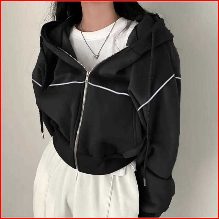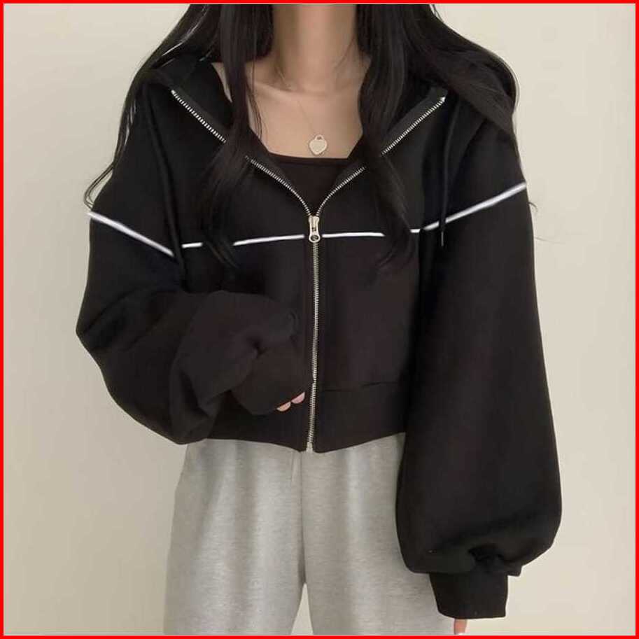 Lily Croope Jaket Jaket Crop Wanita Kekinian Zipper Hoodie