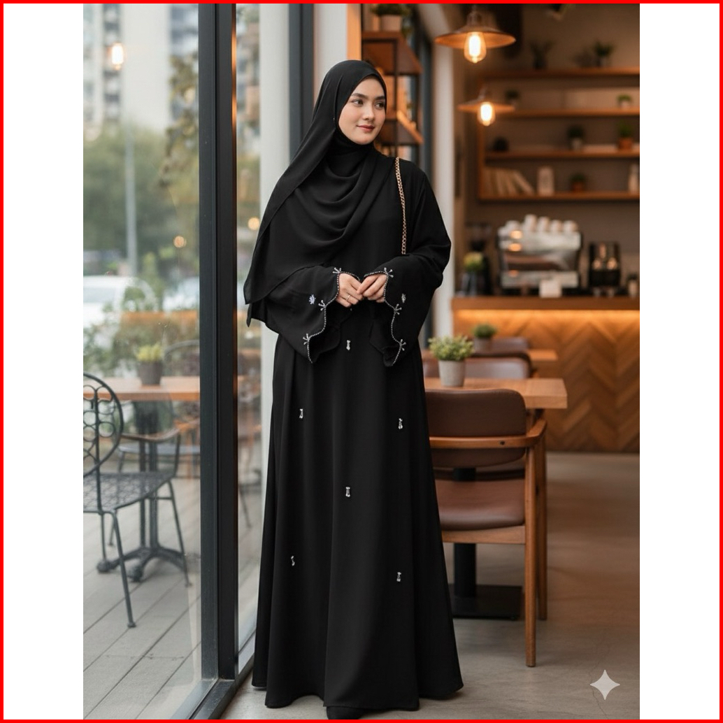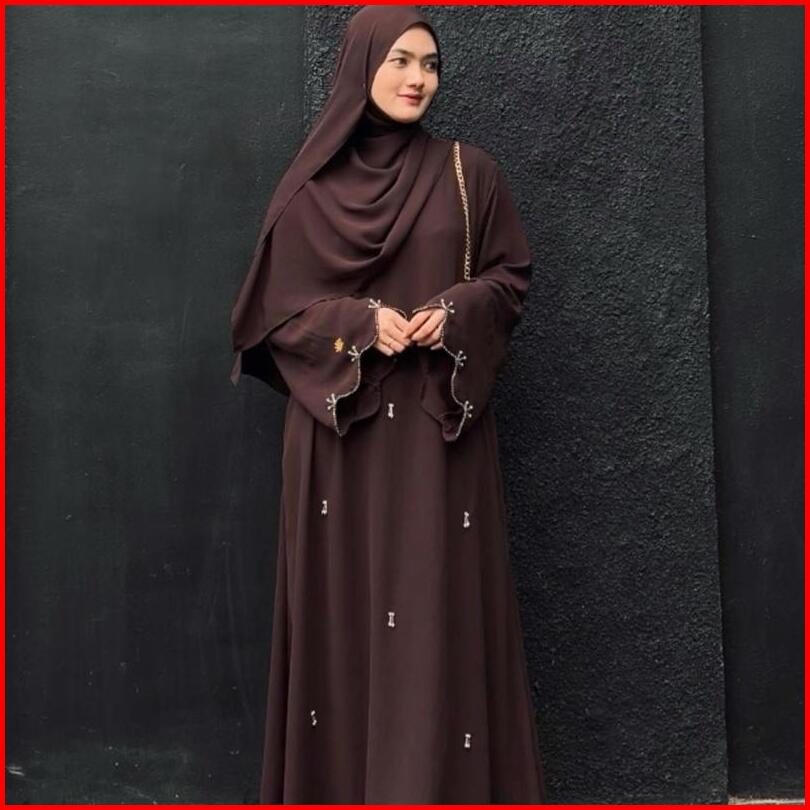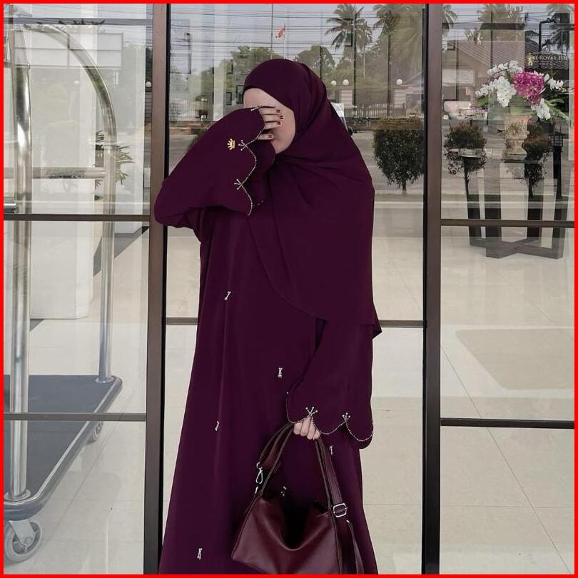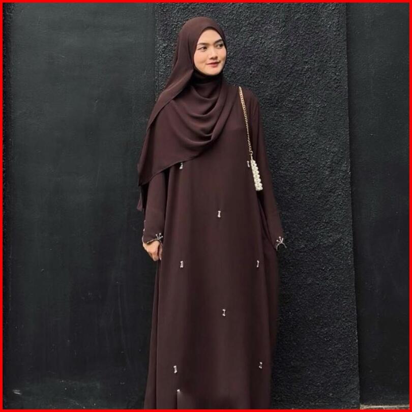 Yasmen Abaya Dress Bahan Marbela Anti Uv Aplikasi Payet Mutiara Abaya Umroh Anti Uv Simple Mewah Elegant