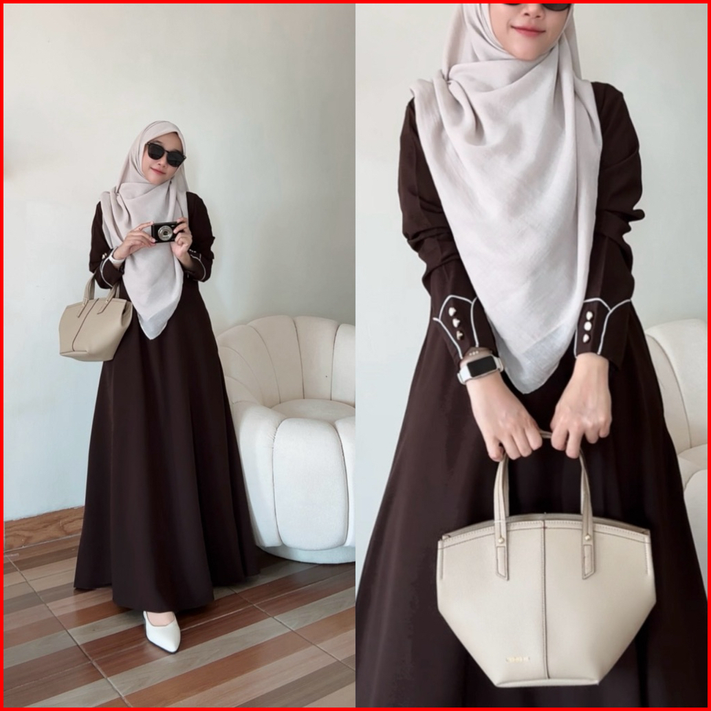 Deena Abaya By Sabrina - Gamis Wanita Muslim Bahan Anti Uv Dress Polos Kancing Pergelangan Tangan