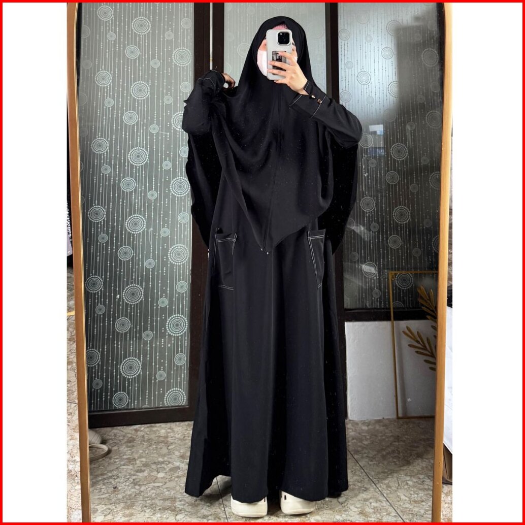 Abaya Sakinah Set Khimar Syari Gamis Haji Dan Umroh Bahan Sabrina Anti Uv Premium