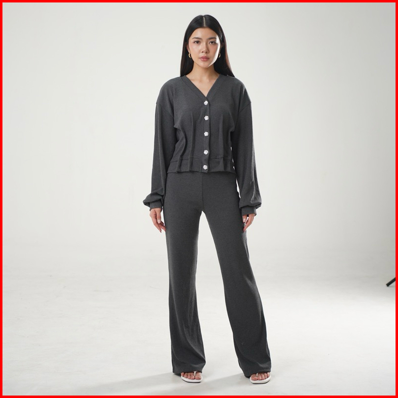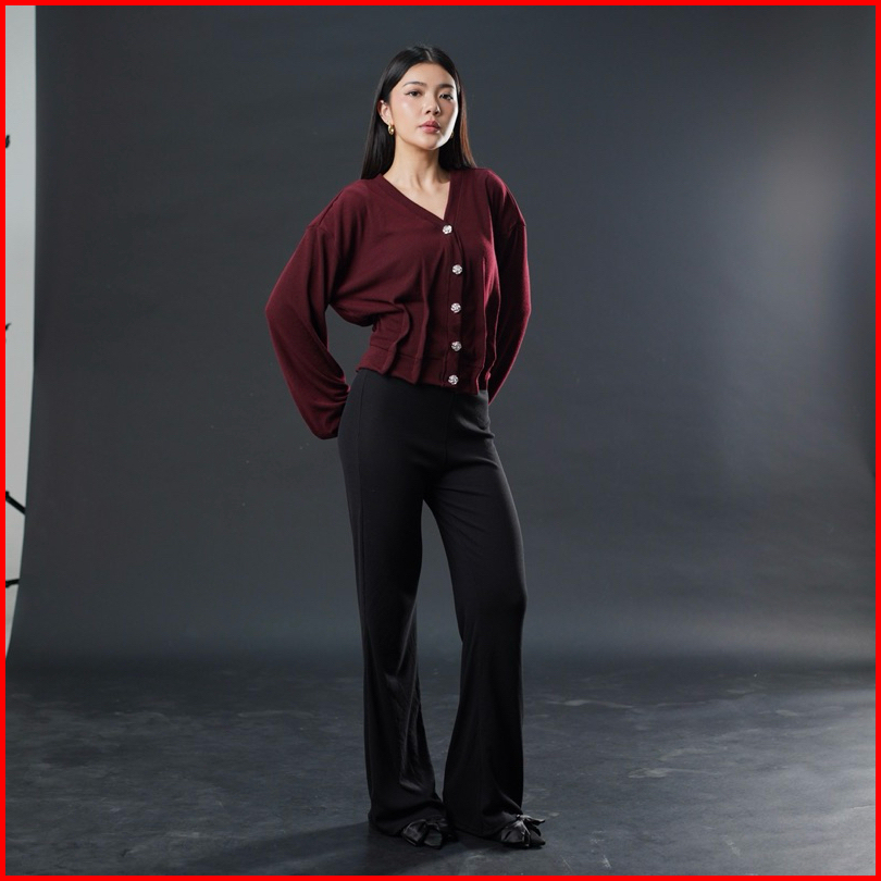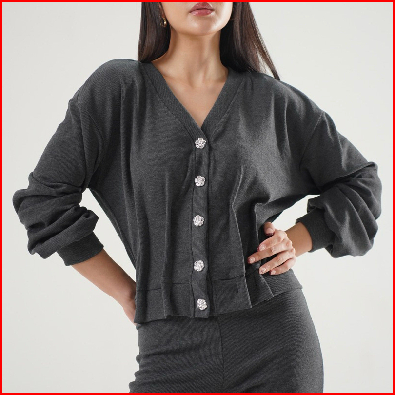 Carol Top - Atasan Knit Cardigan Wanita Lengan Panjang Batwing Outer Kancing Basic Korean Rose Button Blazer Top Summer