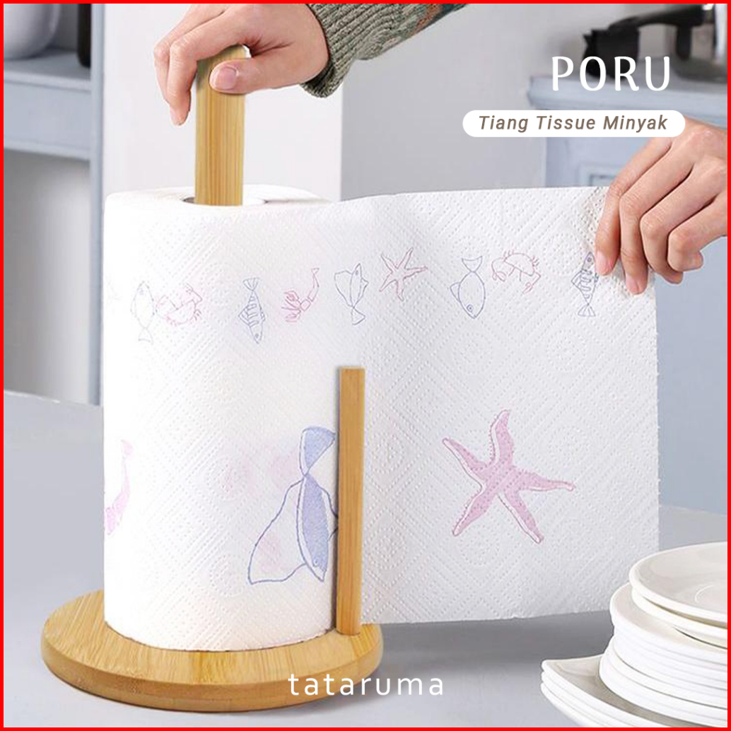 Tataruma Poru - Tiang Kayu Standing Tempat Tisu Roll Dapur Minyak