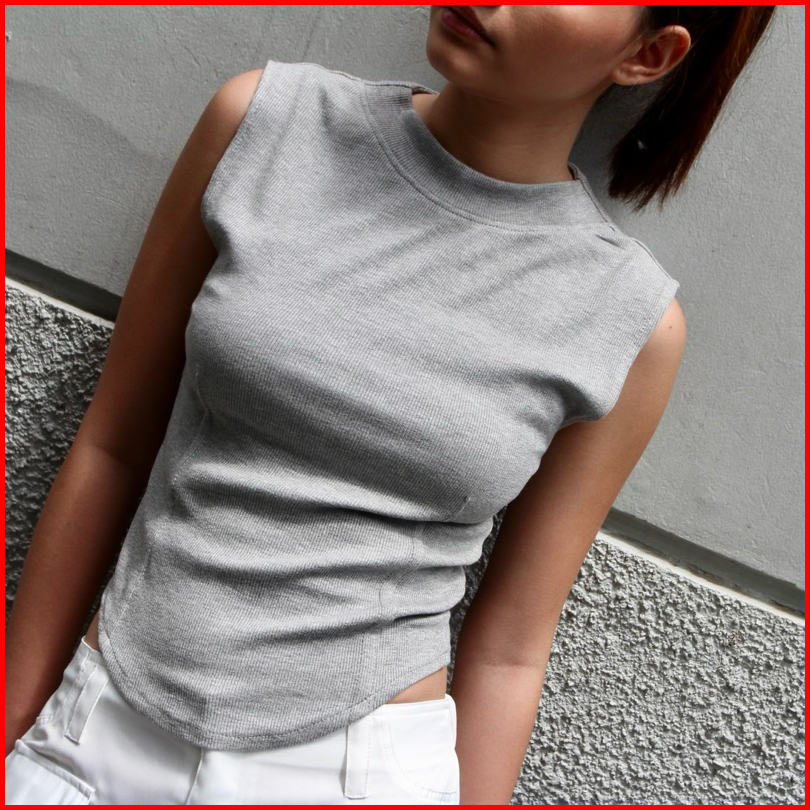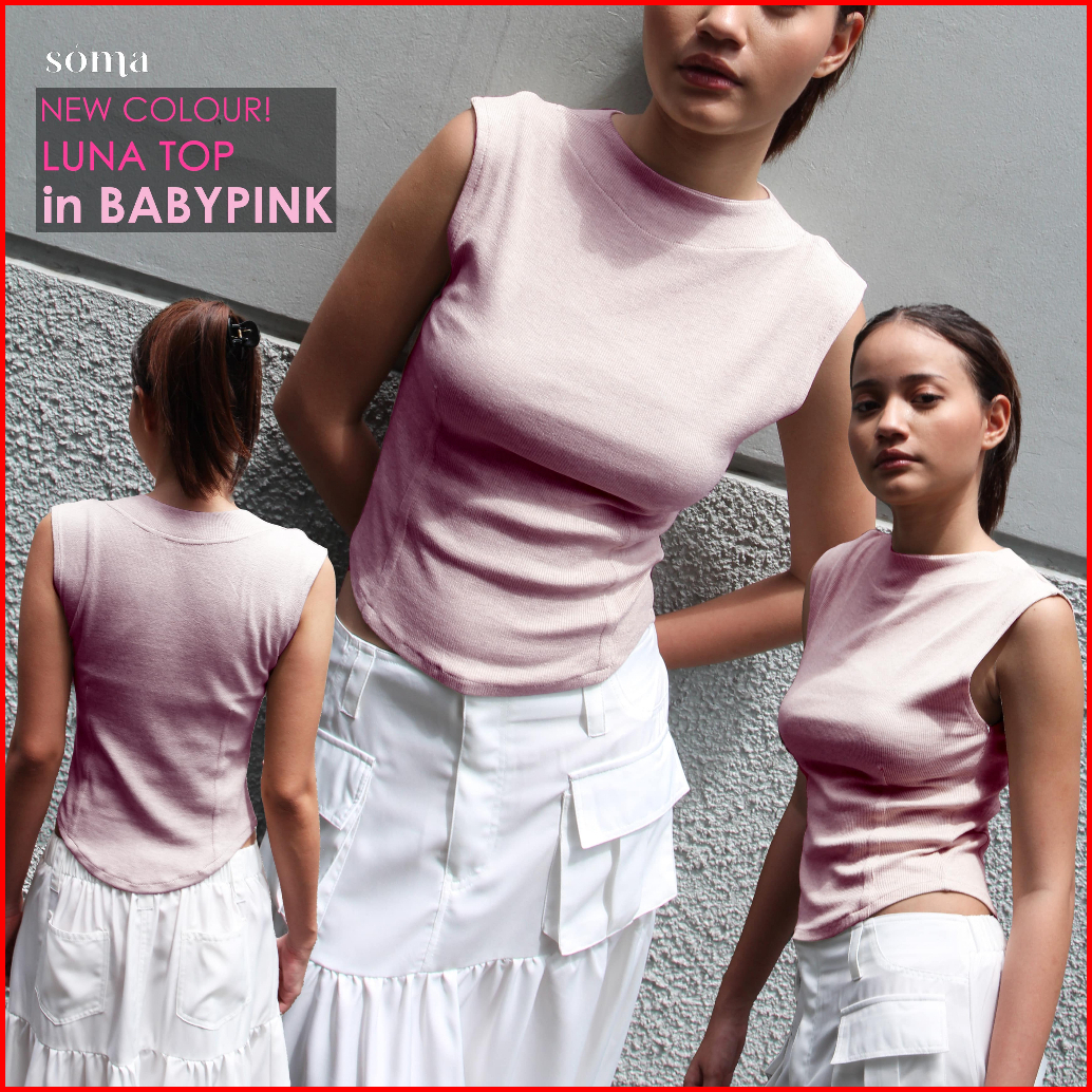 Luna Top - Soma Atasan Rib Knit Oval Summer Halter Neck Kotak Atasan Top Stretch Rib Ribbed Knit