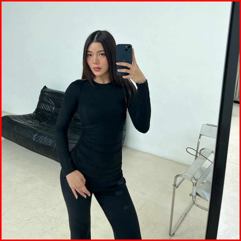 Aime Top Basic Ruched Top Spandex Rample Kaos Collar Neck Racer Tee Basic Long Top Summer Atasan Wanita Soma