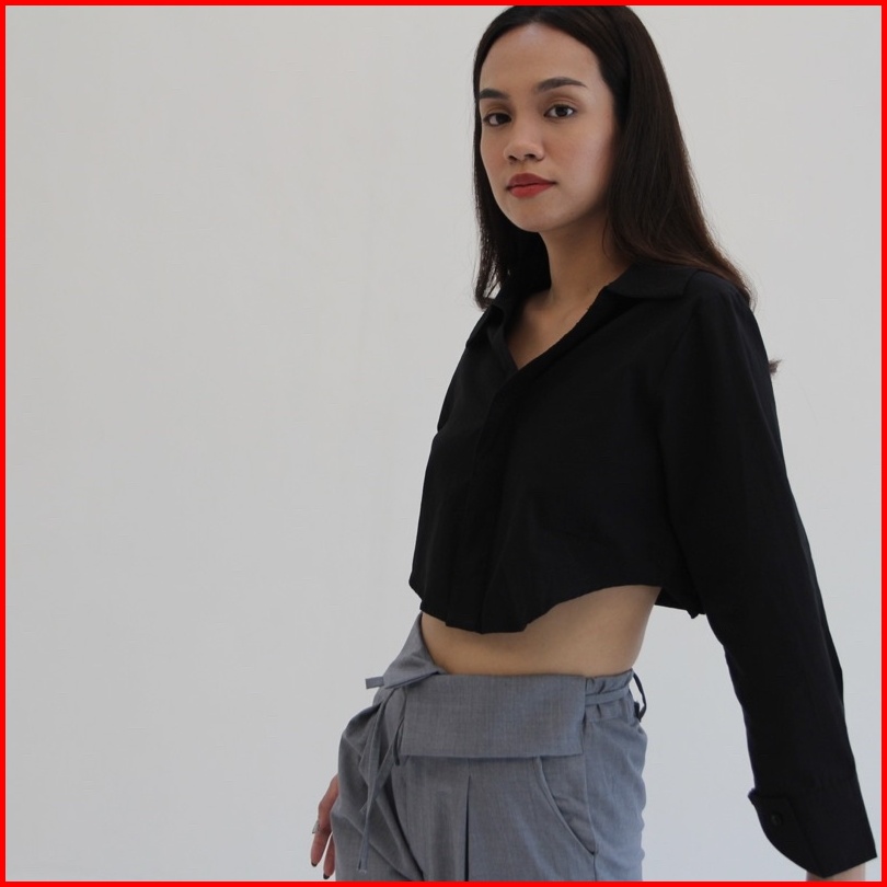 Chloe Top Kemeja Crop Oval Wanita Long Sleeve Shirt Oval Crop Blouse Wanita Cropped Kemeja Tangan Panjang Soma