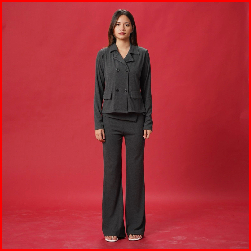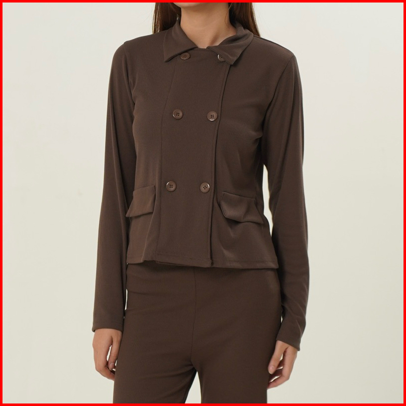 Cho Blazer Top - Atasan Kardigan Knit Wanita Kerah Outer Cardigan Lengan Panjang Kancing Basic Wing Collar Korean Button