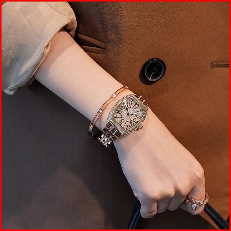 Dgc G108 Jam Tangan Wanita Stainless Steel Berlian Korea Elegan Kuarsa Persegi Panjang Jam Tangan Cewek Free Box