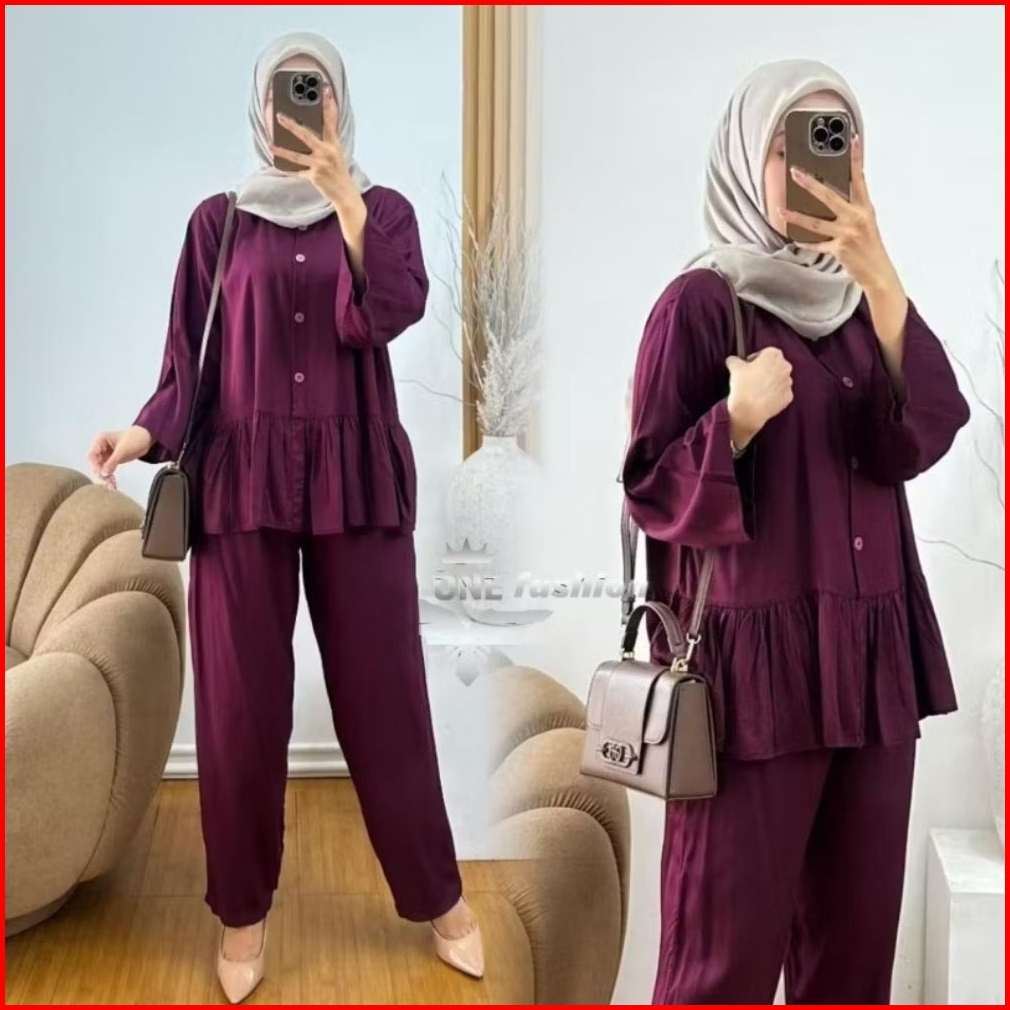 Aghnia Set Rayon Twil Remple Setelan Semi Crop