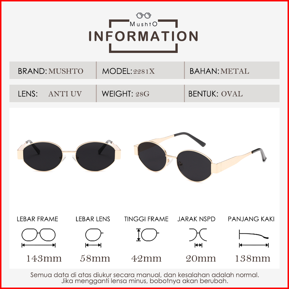 Mushto Sunglasses Kacamata Anti Uv Protection Model Oval Stylish Fashion Wanita Trendy Full Metal Kokoh 2281x