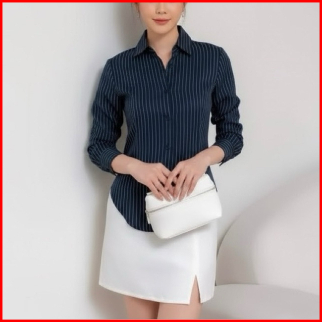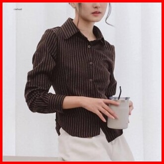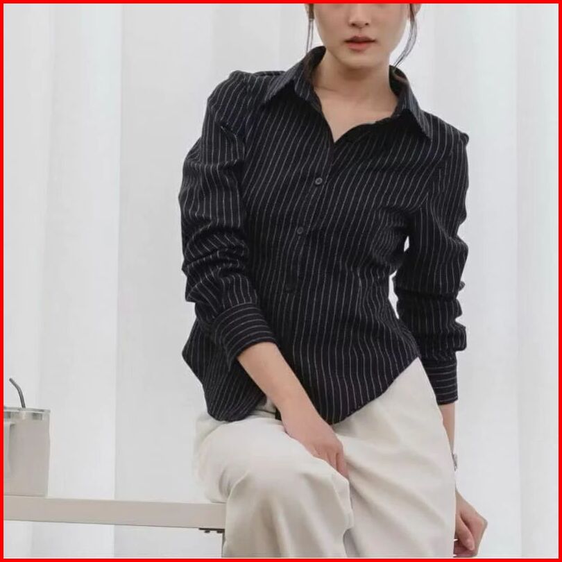 Luna Stripe Kemeja Fitted - Kemeja Wanita Salur Premium - Kemeja Wanitaterbaru - Atasan Wanita Kekinian