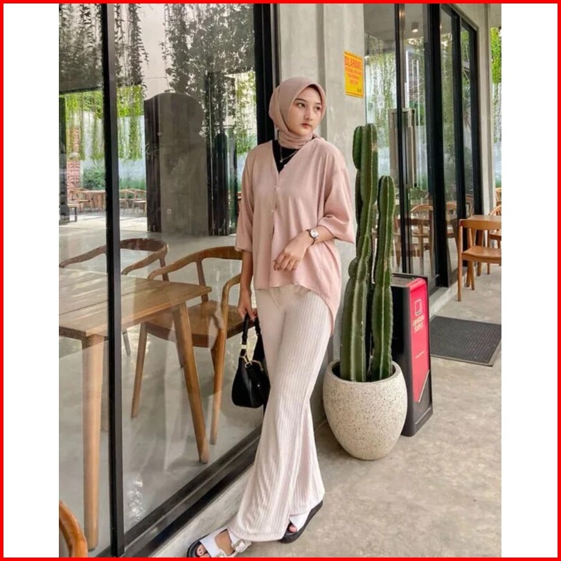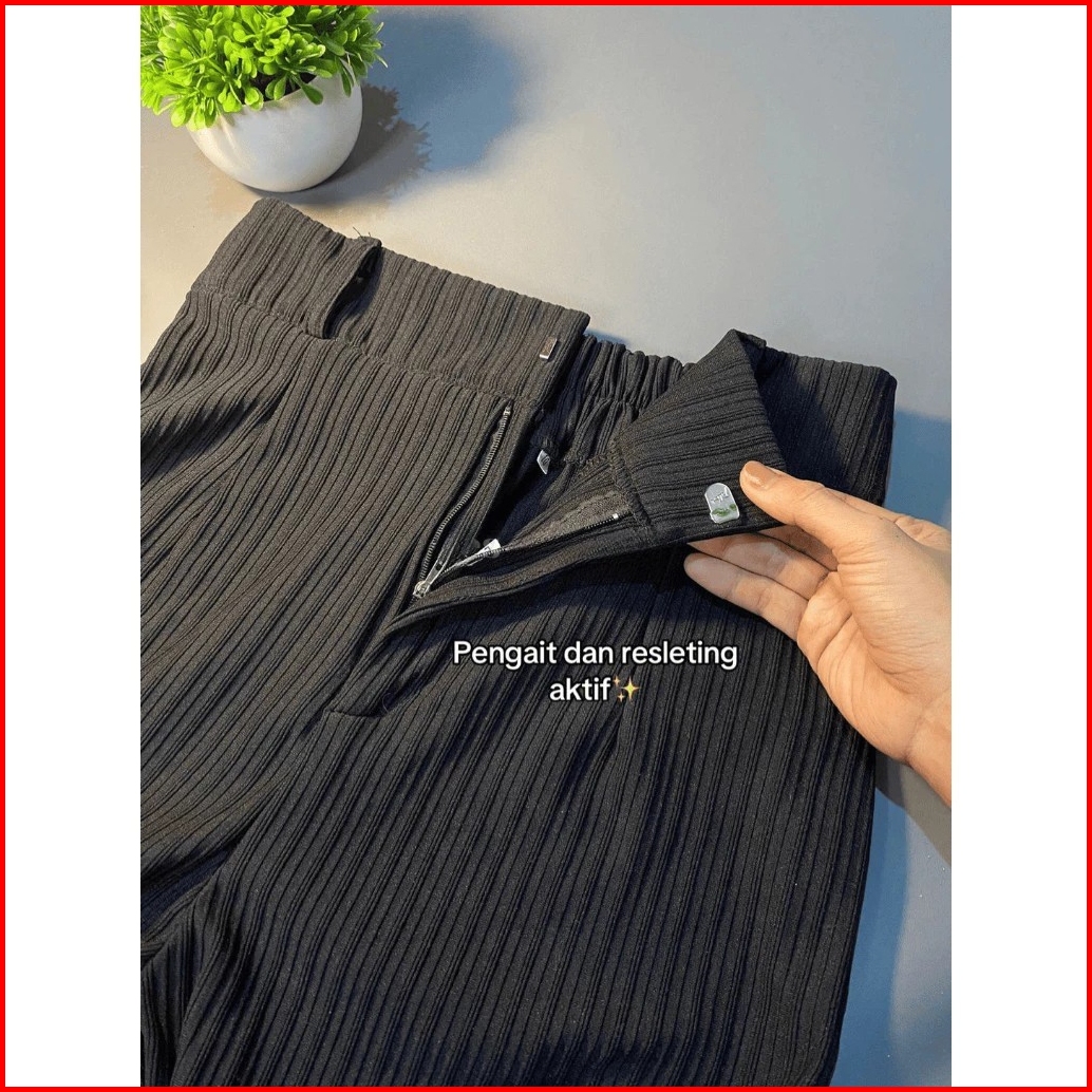 Celana Cutbray Knit Wanita Highwaist Standar Jumbo Resleting Full Karet