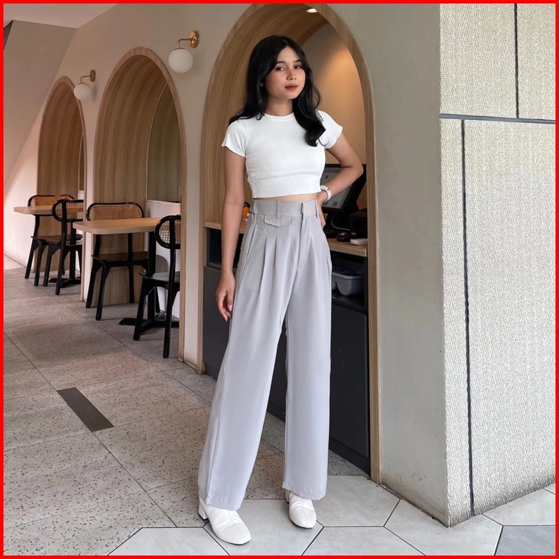 Oro Pants Celana Kulot Highwaist Anti Kusut Loose Pants Trouser Wanita Celana Panjang Casual Formal
