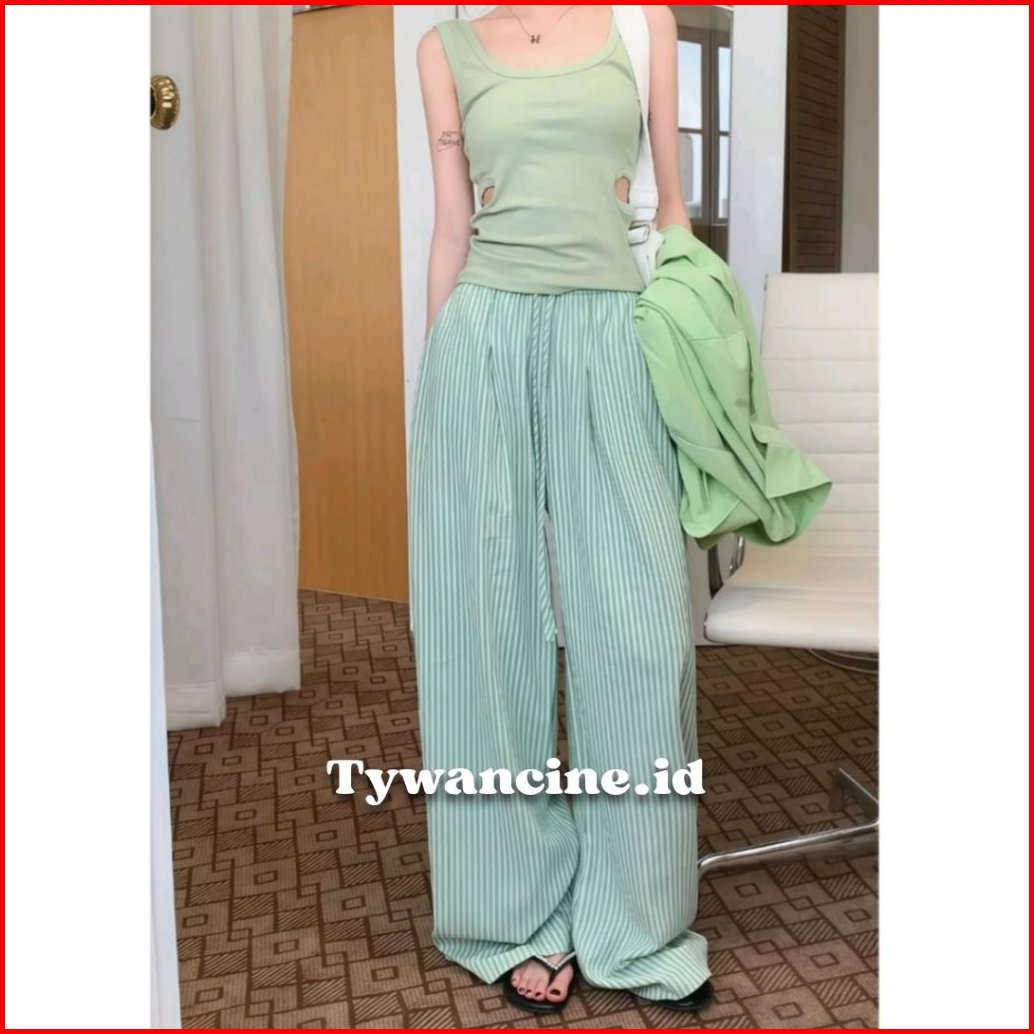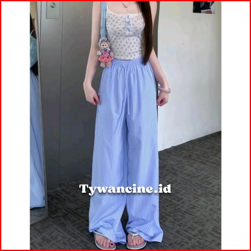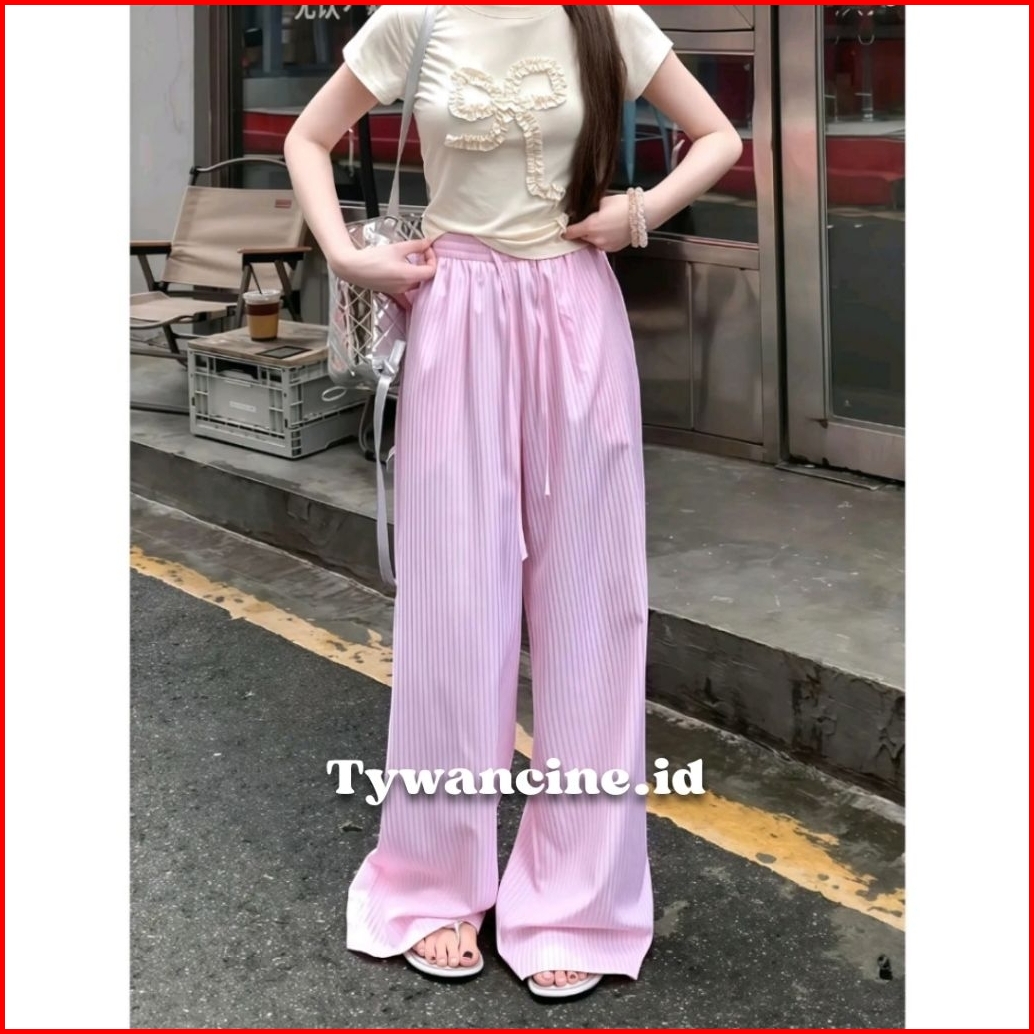 Everyday Stripe Pants - Celana Kulot Panjang Wanita Highwaist Motif Garis-garis Stripe Bangkok Celana Formal Casual Sant