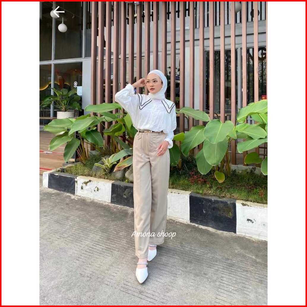Amona-oro Pants - Loose Pants Trouser Wanita - Celana Anti Kusut - Celana Kulot Kenit Premium