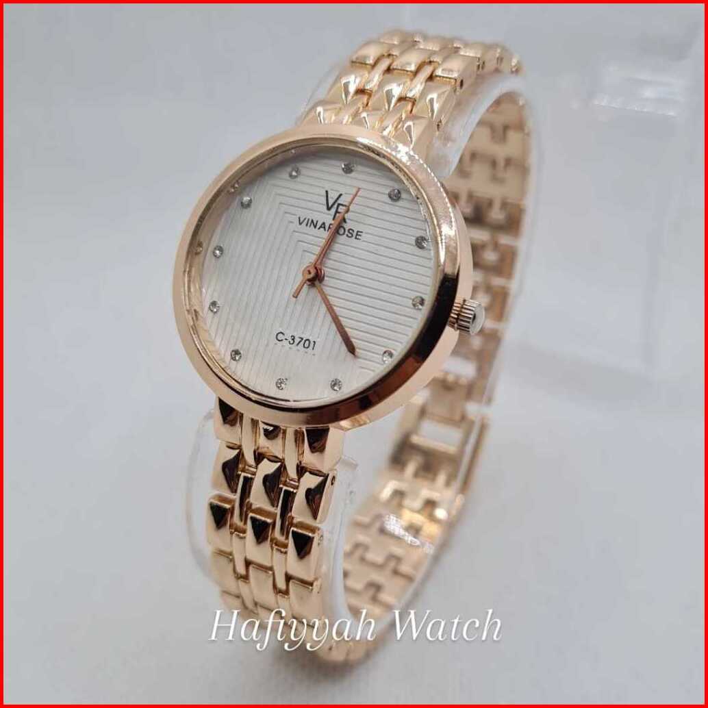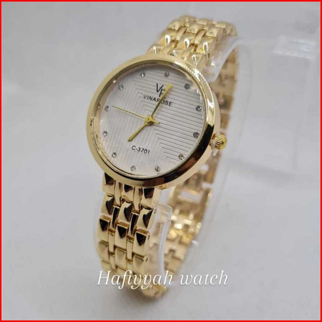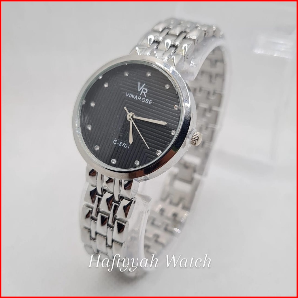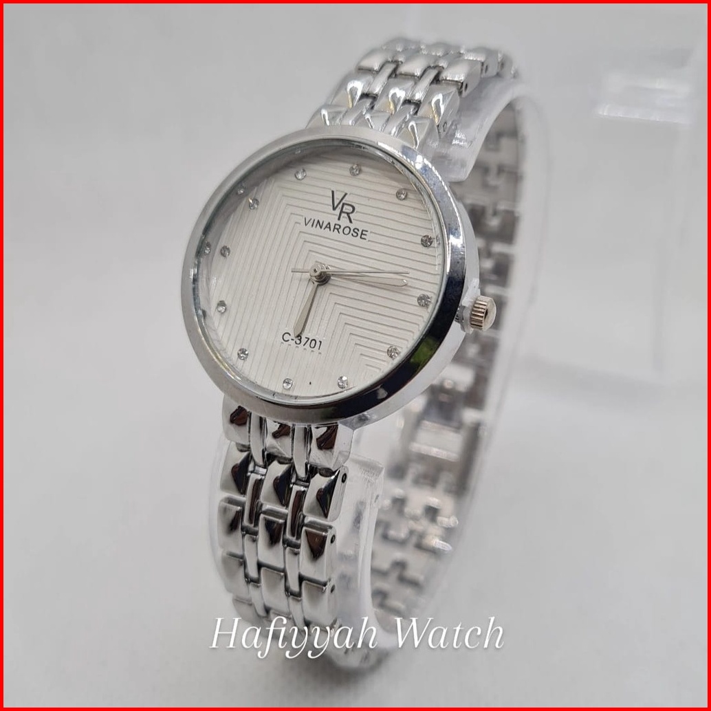 Jam Tangan Wanita Dewasa Vinarose Permata Polos Stainless Steel Model Bulat