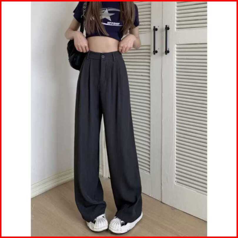 Korean Import Fashion Loose Highwaist Wanita Kulot Anti Kusut