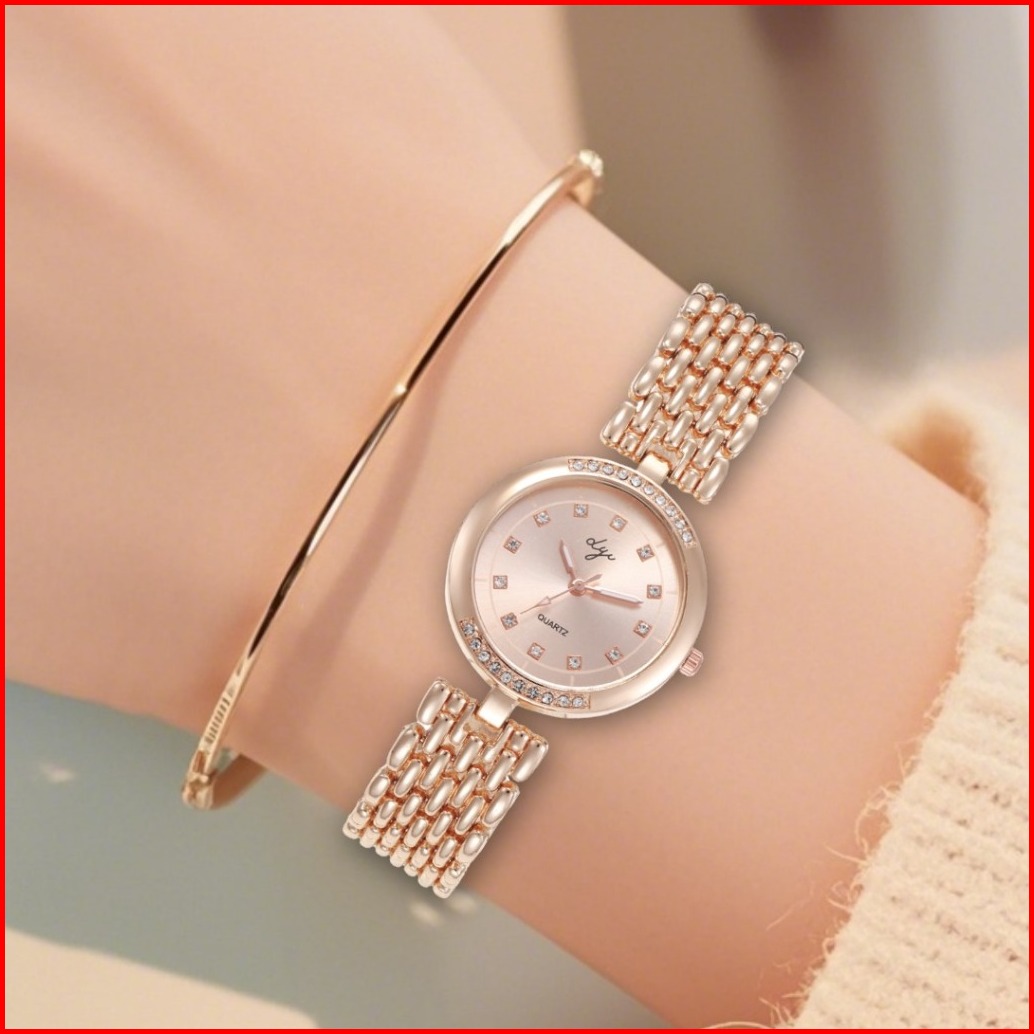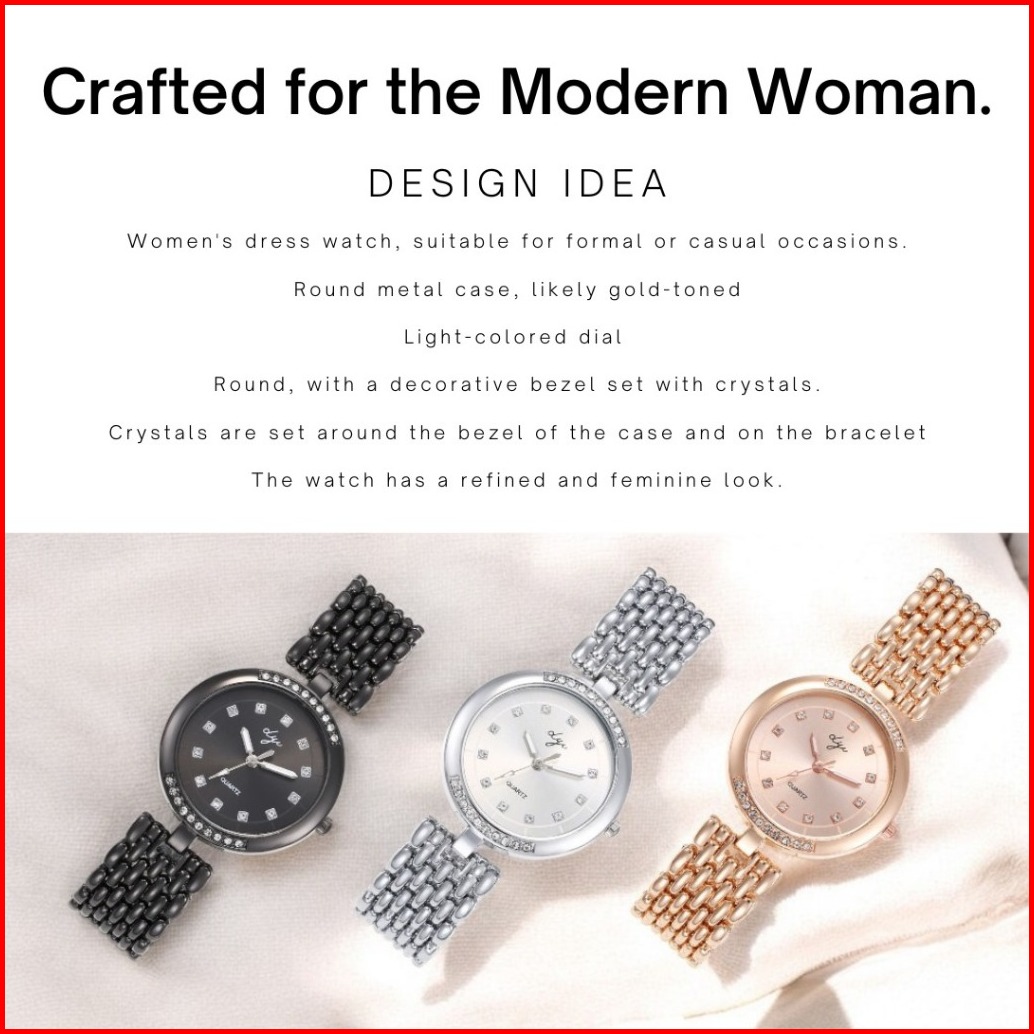 G118 Jam Tangan Wanita Hitam Putih Roes Bulat Alloy Business Jam Tangan Stainless Jam Tangan Korea Free Baterai