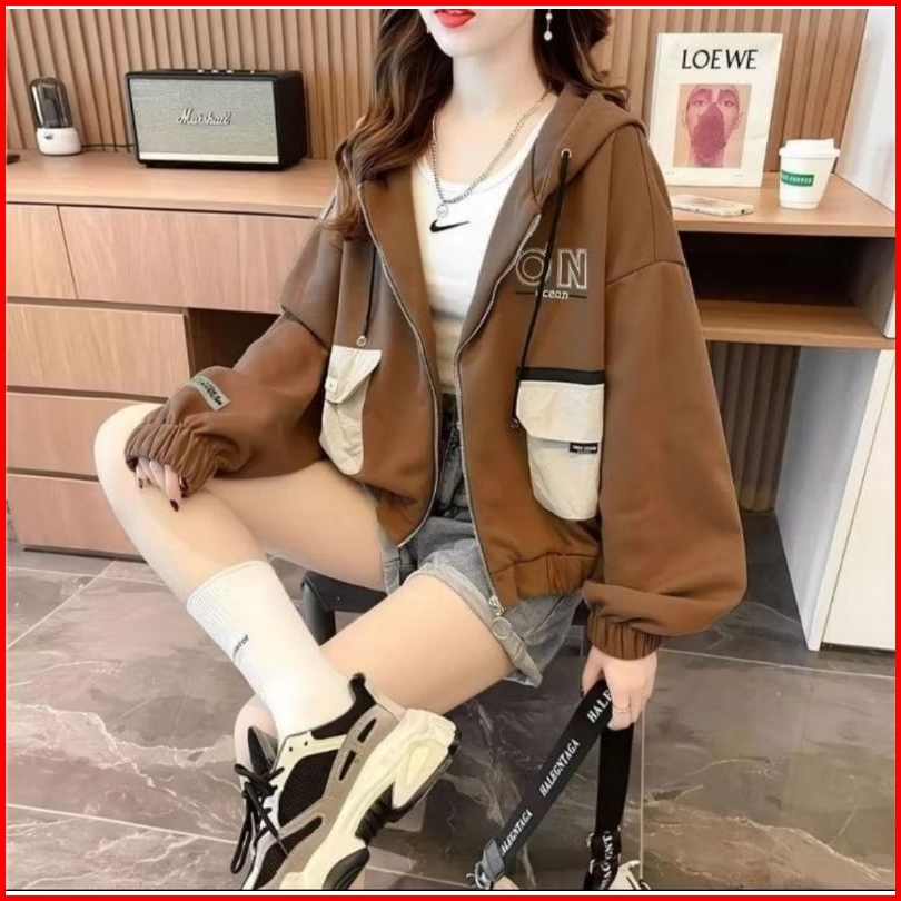 Hoodie Ziper Wanita On Ocean Korean Style