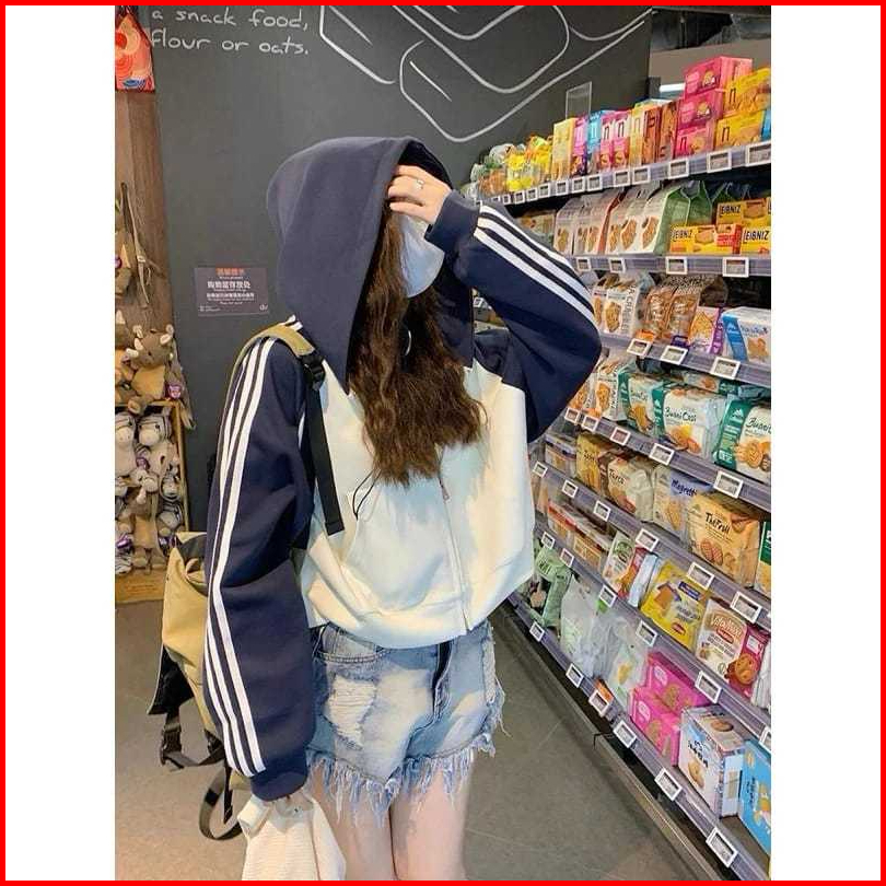 Chinami Jaket Crop Wanita Korean Style - Jaket Hoodie Crop Wanita Oversize