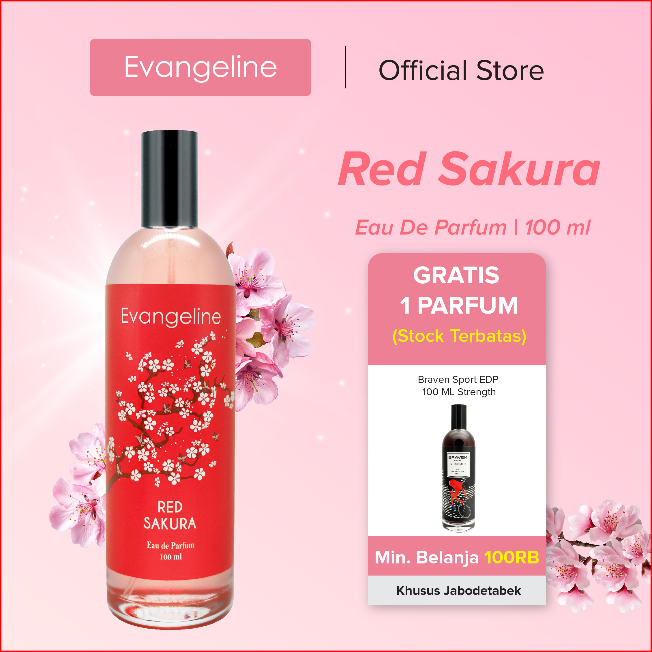Evangeline Eau De Parfum Red Sakura 100ml Best Seller Parfum Wanita Edp Tahan Lama