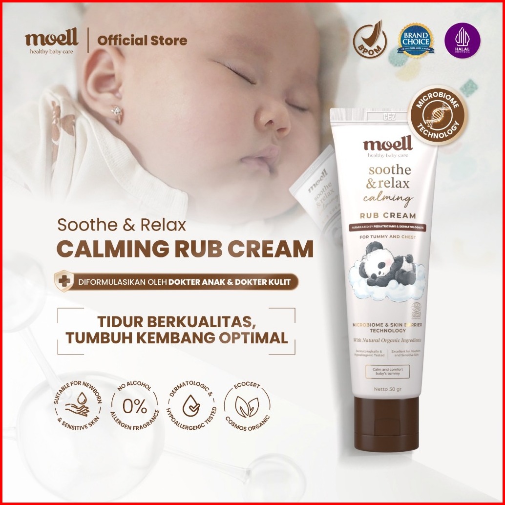 Moell Soothing Calming Rub Cream 50gr - Red Ginger Lavender Oil Bisabolol - Meningkatkan Kualitas Tidur - Anti Kolik Kem