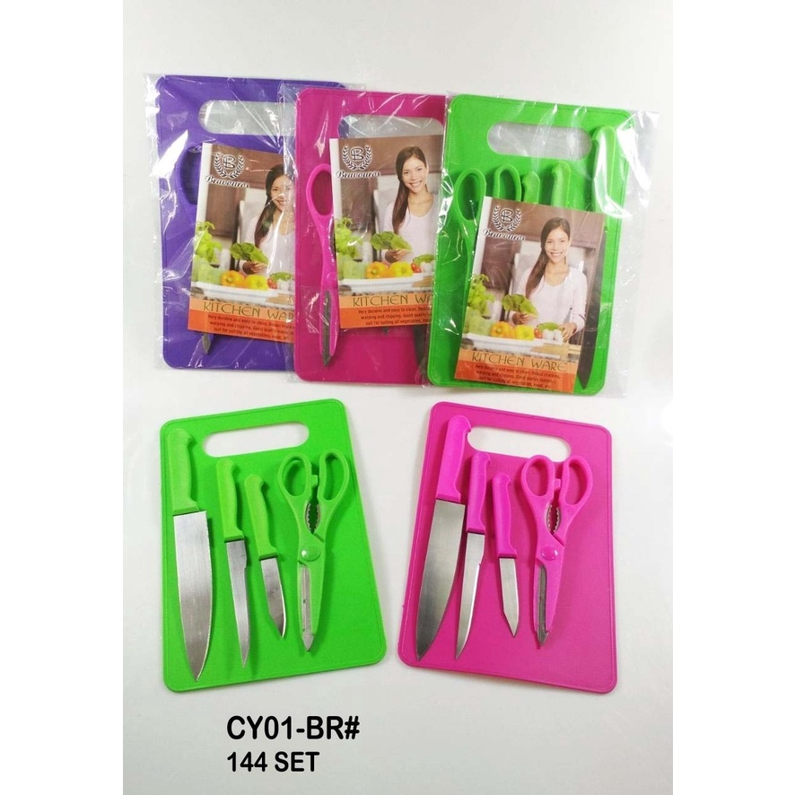 Kitchen Knife Set Pisau 4 In 1 + Talenan Set Pisau Gunting CY01-BR