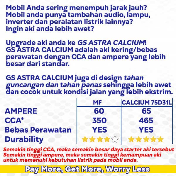Aki GS ASTRA MF 55D23L untuk mobil Toyota Innova, Camry, Fortuner, dll