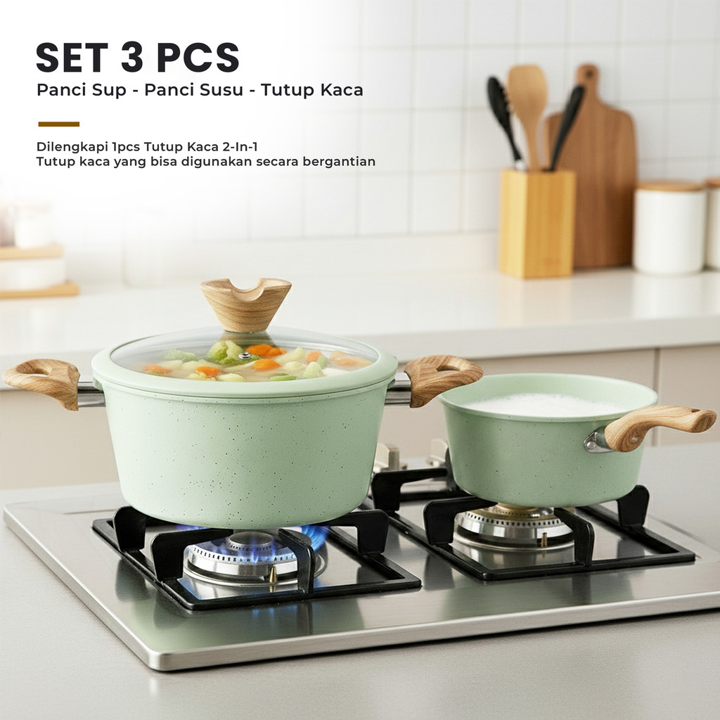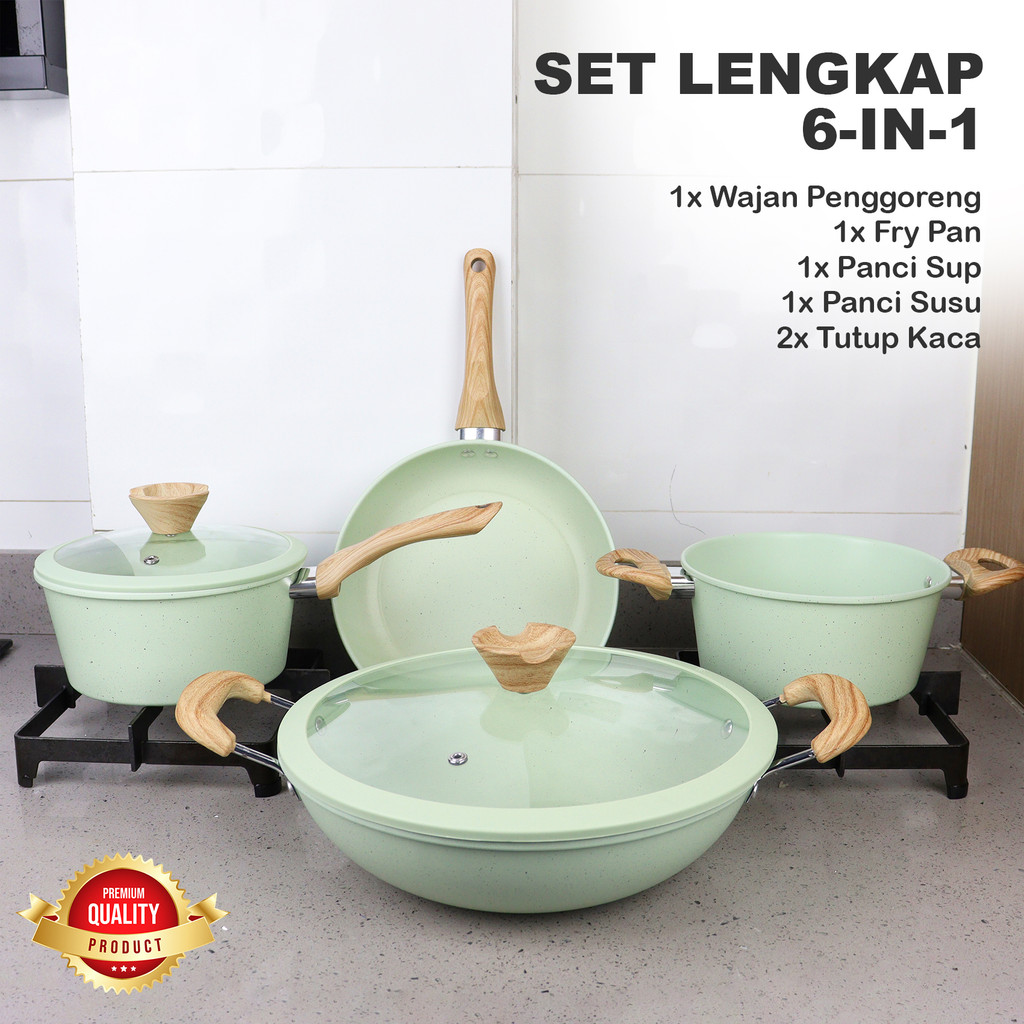 (FREE PIRING)Panci Marble Set 6 pcs Anti Lengket - Panci Wajan Serbaguna Estetik untuk Semua Jenis Kompor