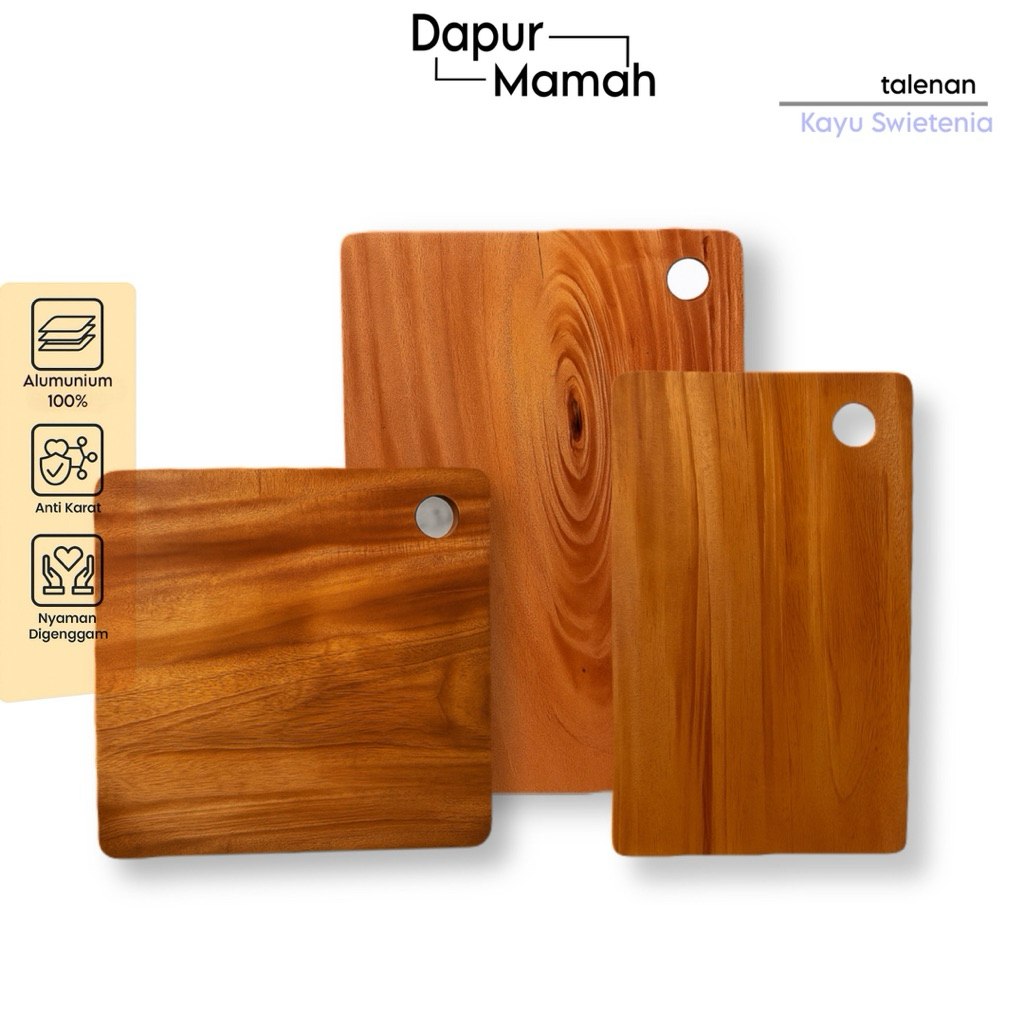 Dapurmamah - Talenan Kayu Switenia Premium Tebal Bentuk Square Aesthetic Food Grade Korea Alat Masak