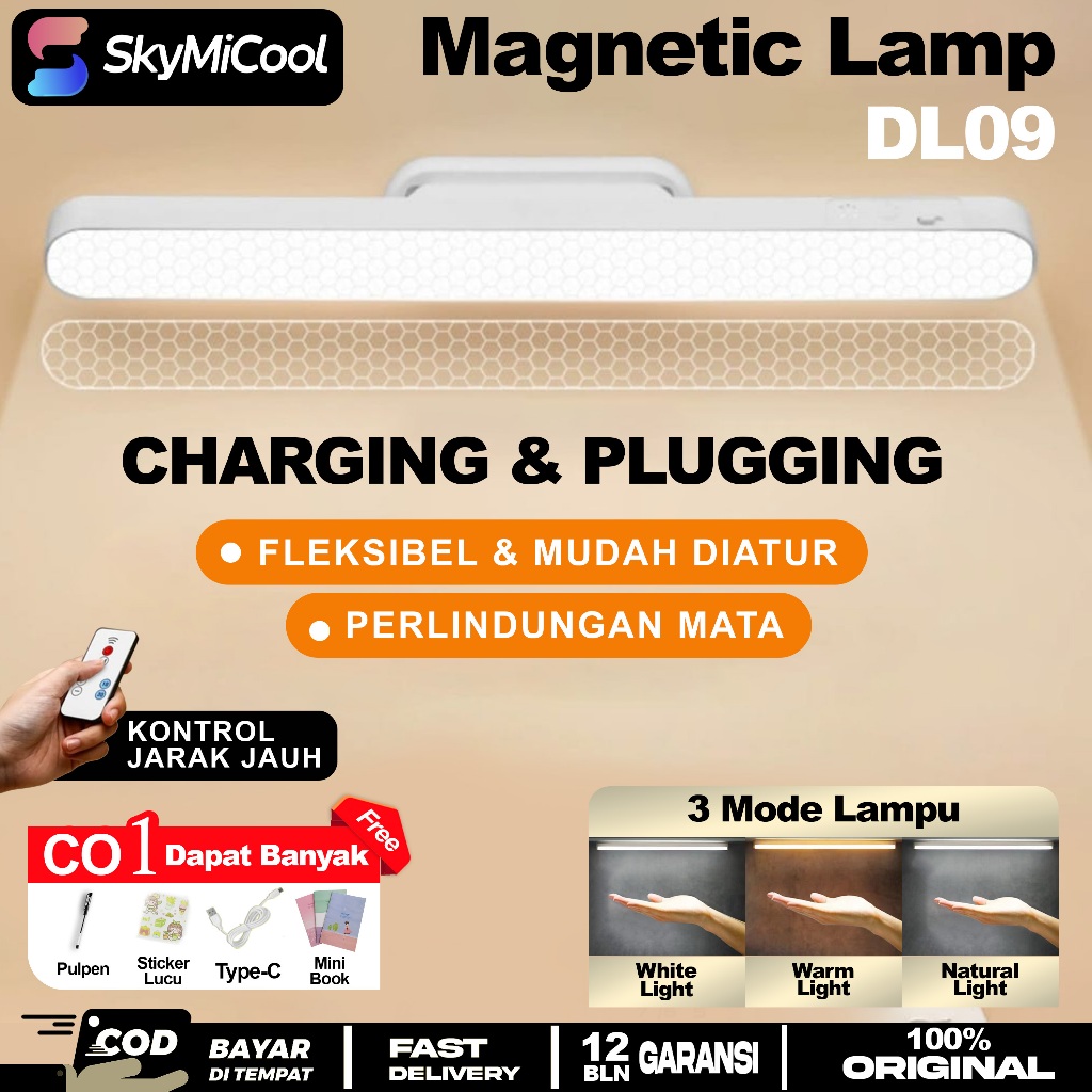 Skymicool Lampu Tidur Lampu Dinding Magnetic 3In1 Led Wireless Tanpa Kabel Magnet Portable Fitur Sentuh 3 Pencahayaan Dl