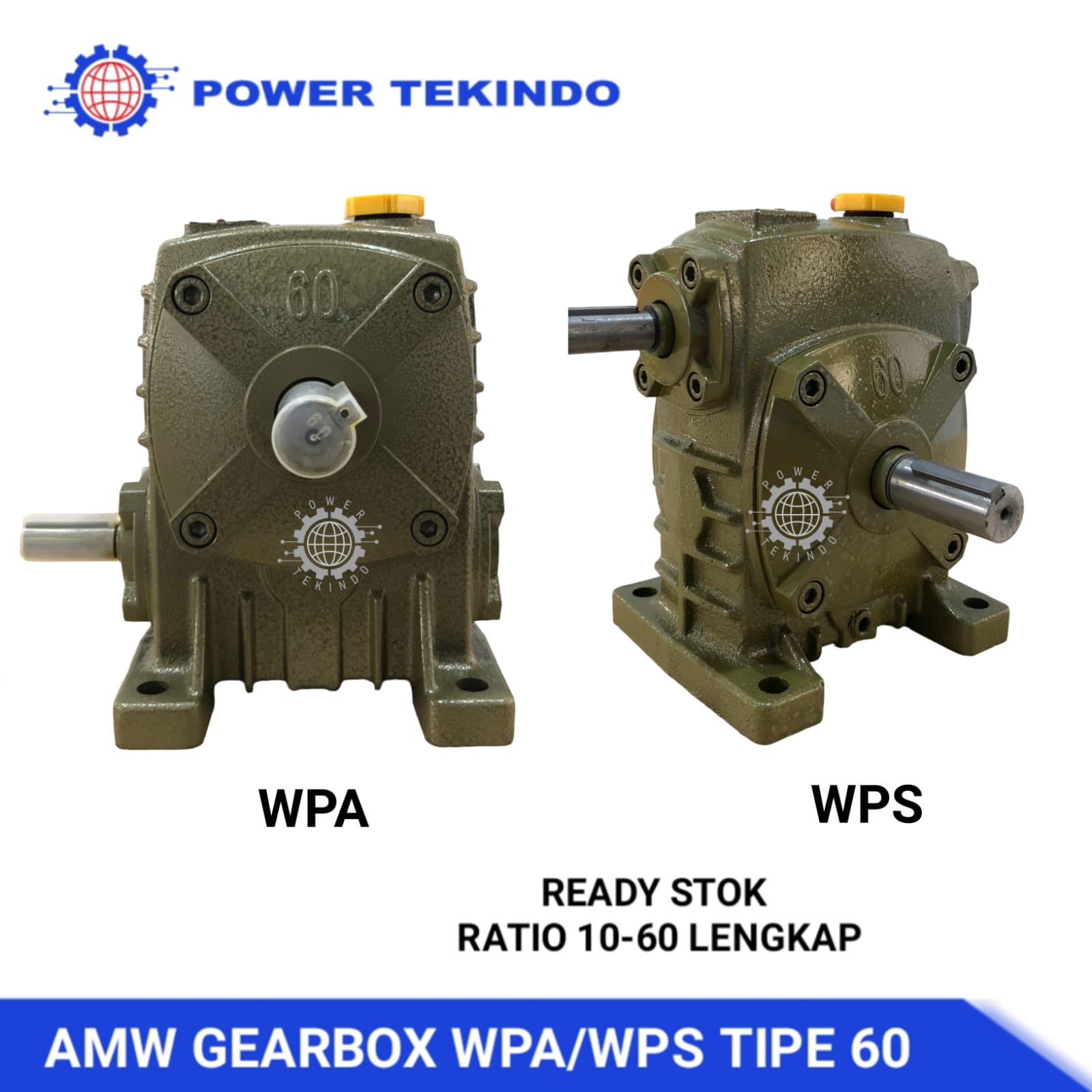 Gearbox WPA 60 / WPS 60 Merk AMW - Rasio 1:10 - 1:60 Lengkap Produk Baru Pengurang Kecepatan Worm Gear Girbok