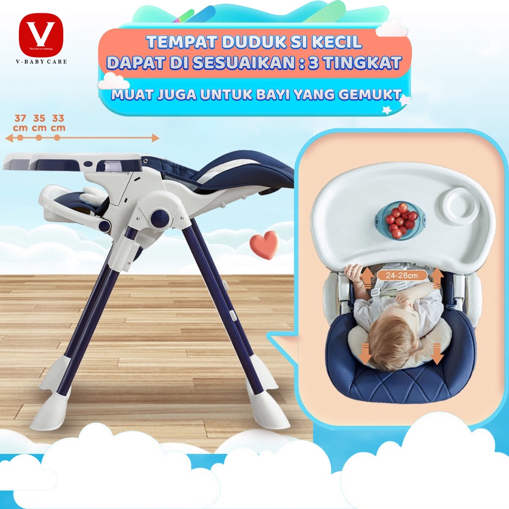V-BABY CARE Kursi Makan Bayi/ Bayi Rumah Tangga Anak Multifungsi Meja Makan/ Kursi makan Lipat Duduk dan Berbaring Safet