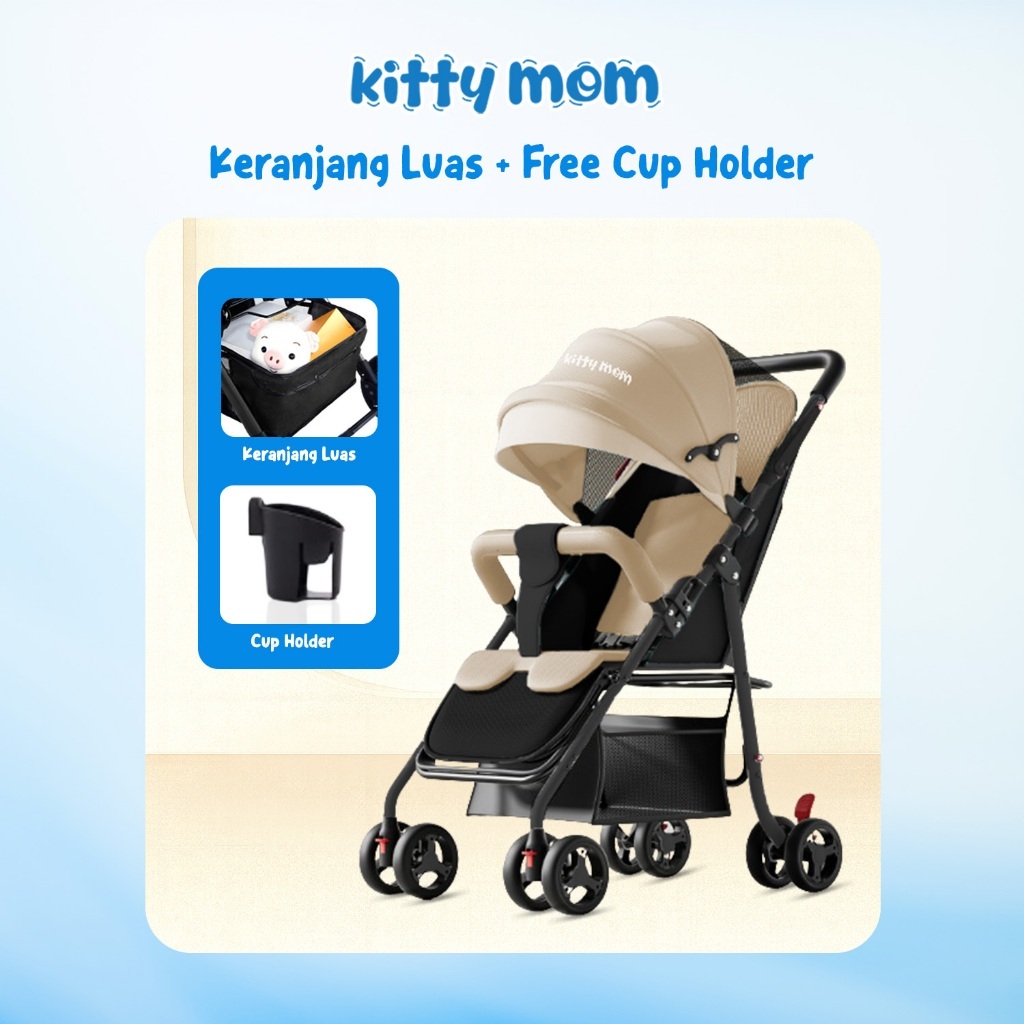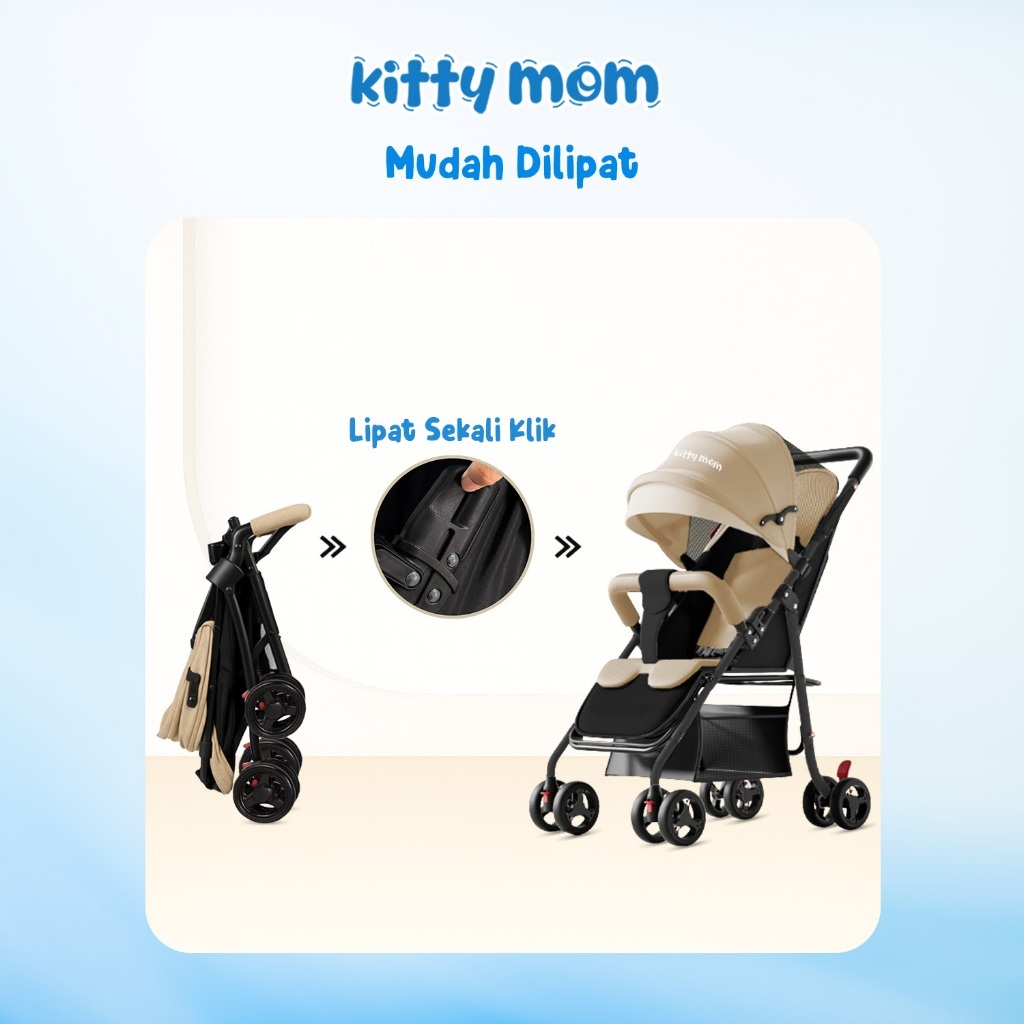 Kitty Mom Stroller Bayi Lipat Travelling Newborn Cabin Size Dorong Travel Friendly Mudah Dilipat Multi Posisi 0-5 Tahun