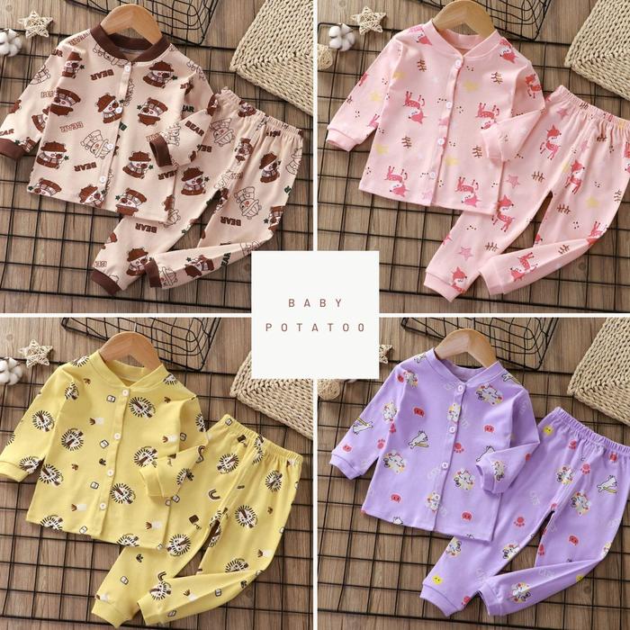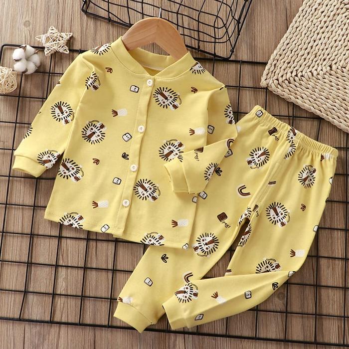SETELAN PIYAMA BAJU BAYI/BAJU TIDUR PIYAMA BAYI/SLEEPSUIT BAYI KANCING TENGAH - DETECTIVE BEAR, 6-12 BULAN