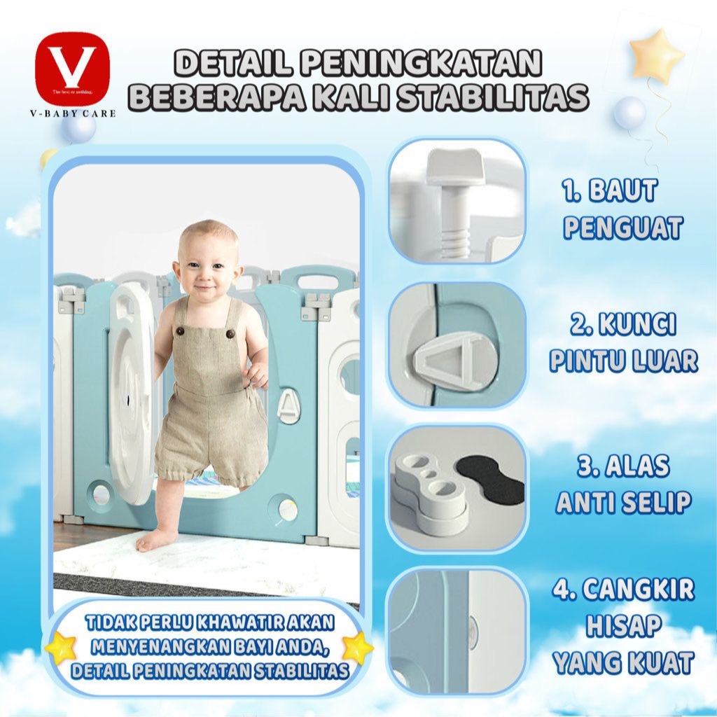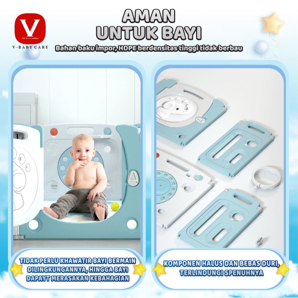 V-BABY CARE Pagar anak /pagar bermain anak/pagar bermain anak/pagar dilipat/ free ring basket-Y5