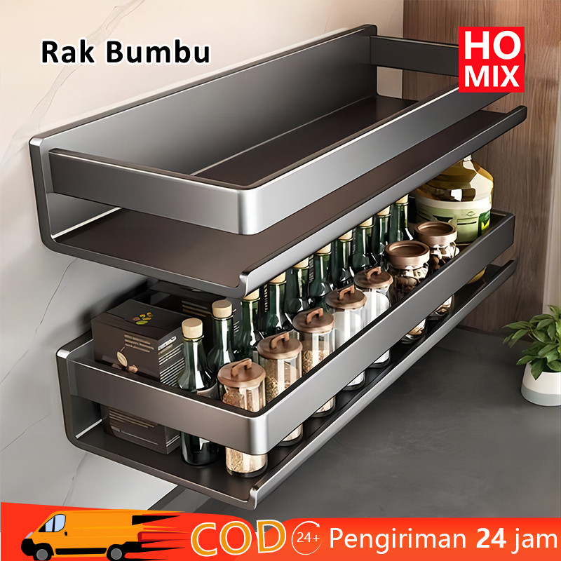 HOMIX Rak Bumbu Dapur Rak Gantung Rak Dapur 2 Susun Rak Penyimpanan Dapur Kuat Rak Multifungsi